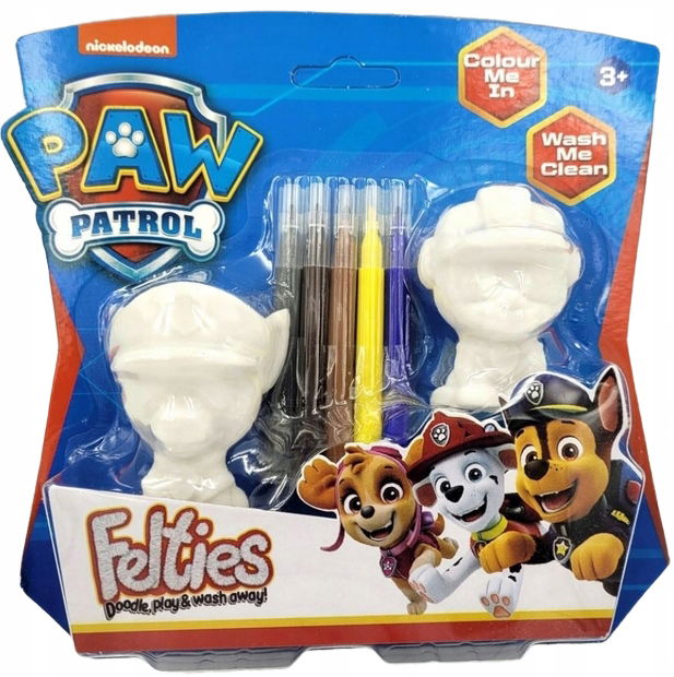 - Zestaw zawiera: 2 figurki (Chase i Rubble) + 5 zmywalnych mazaków