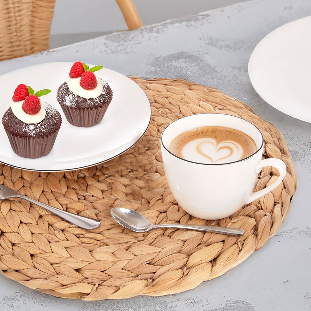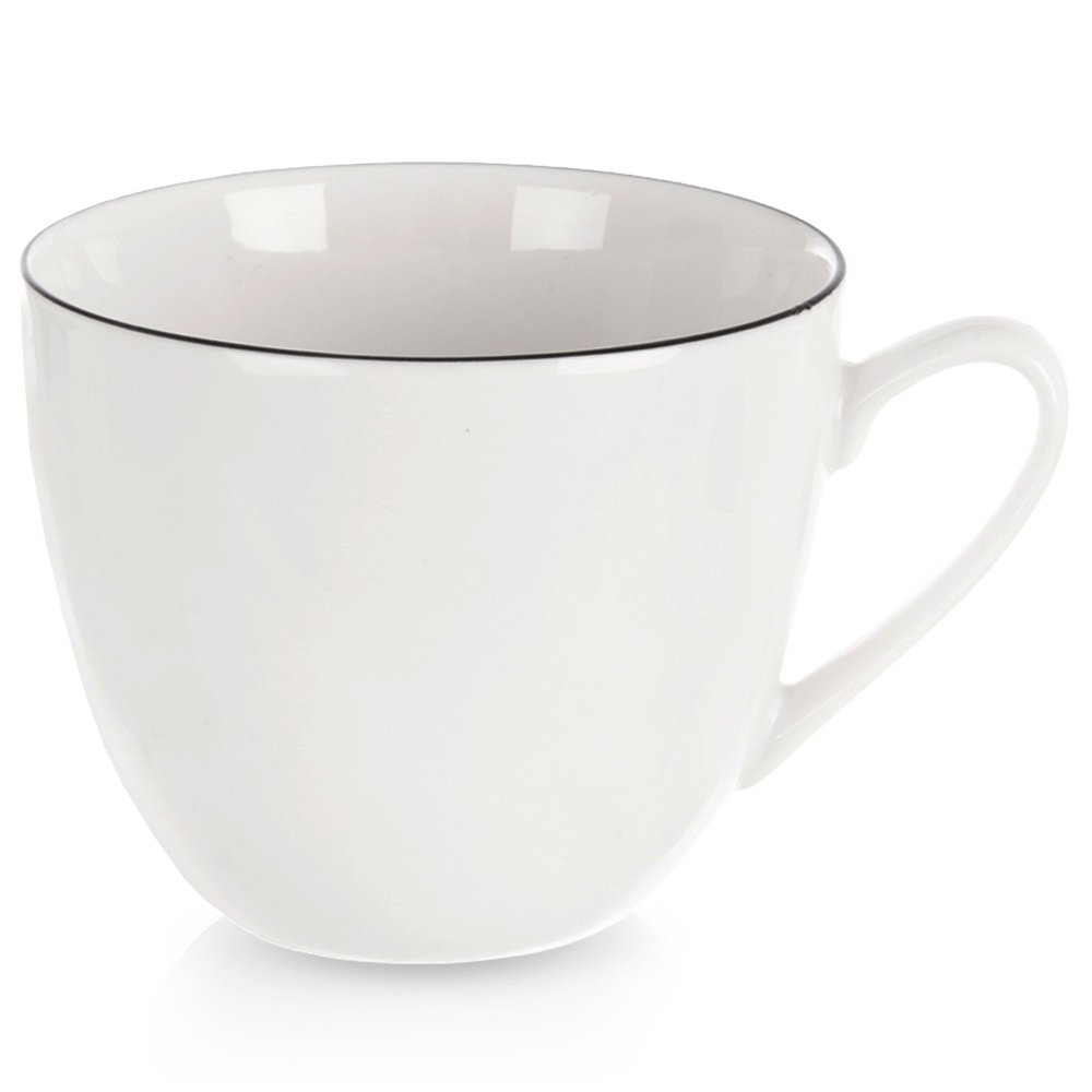Wykonana z porcelany - Wykonana z najwyższej jakości porcelany w białym kolorze. Delikatne wykończenie w postaci cienkiej czarnej obwódki podkreśla elegancki charakter filiżanki i nadaje jej ponadczasowy wygląd.