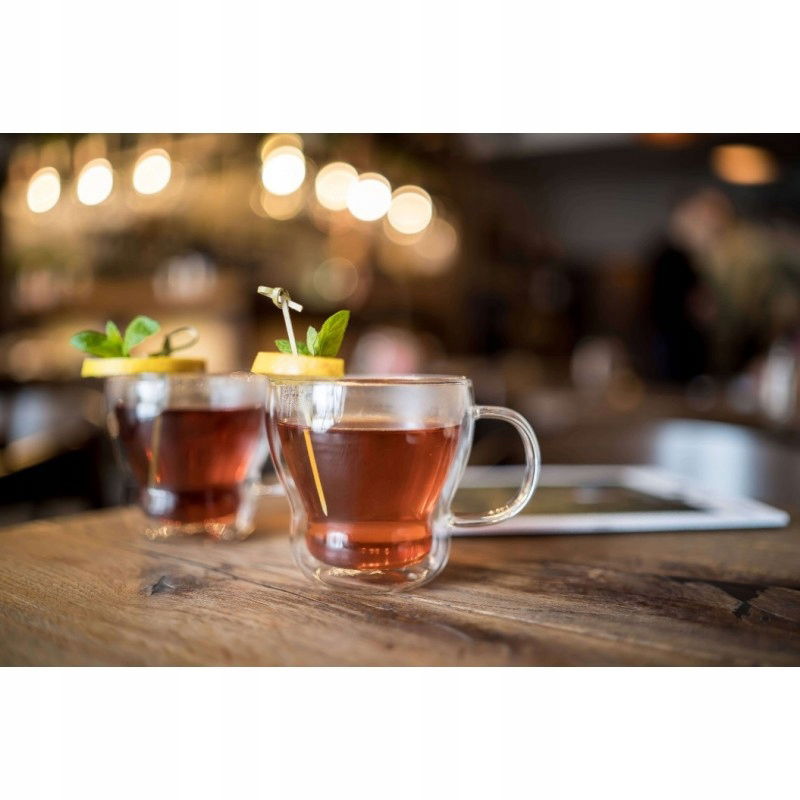 Szklanki dzięki temu, że mają podwójne ścianki utrzymują odpowiednią temperaturę, oraz chronią przed poparzeniem.