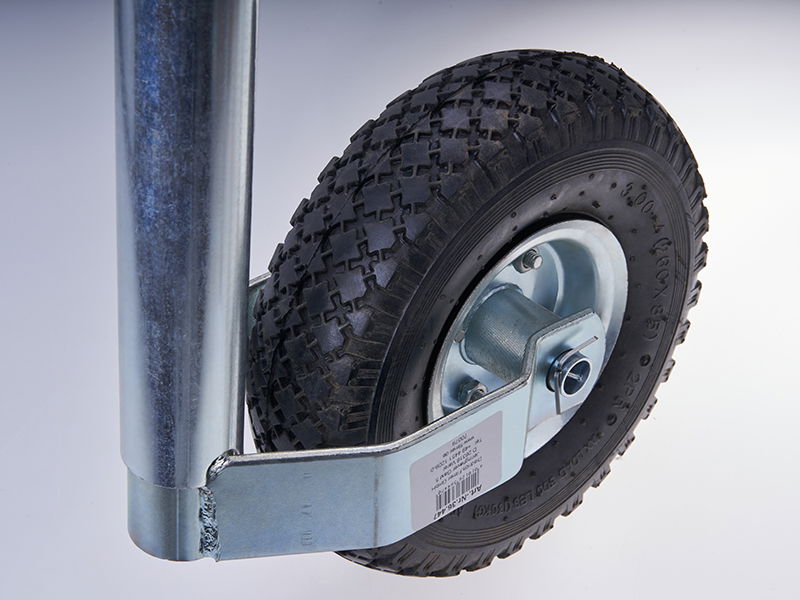 Koło podporowe 260/80 Opony z pianki PU - Opony z pianki PU: Ø 260 x 80 mm • z profilem • Siła podporowa: 150 kg • Wysokość podnoszenia: 250 mm • Średnica: 48 mm • do przyczep samochodowych • ze stabilną korbą • Kolor: srebrny • Materiał: stal węglowa • Wymiary: 590 x 320 x 130 mm • Opakowanie: naklejka z kodem kreskowym Pasujące: uchwyt zaciskowy nr art. 36443