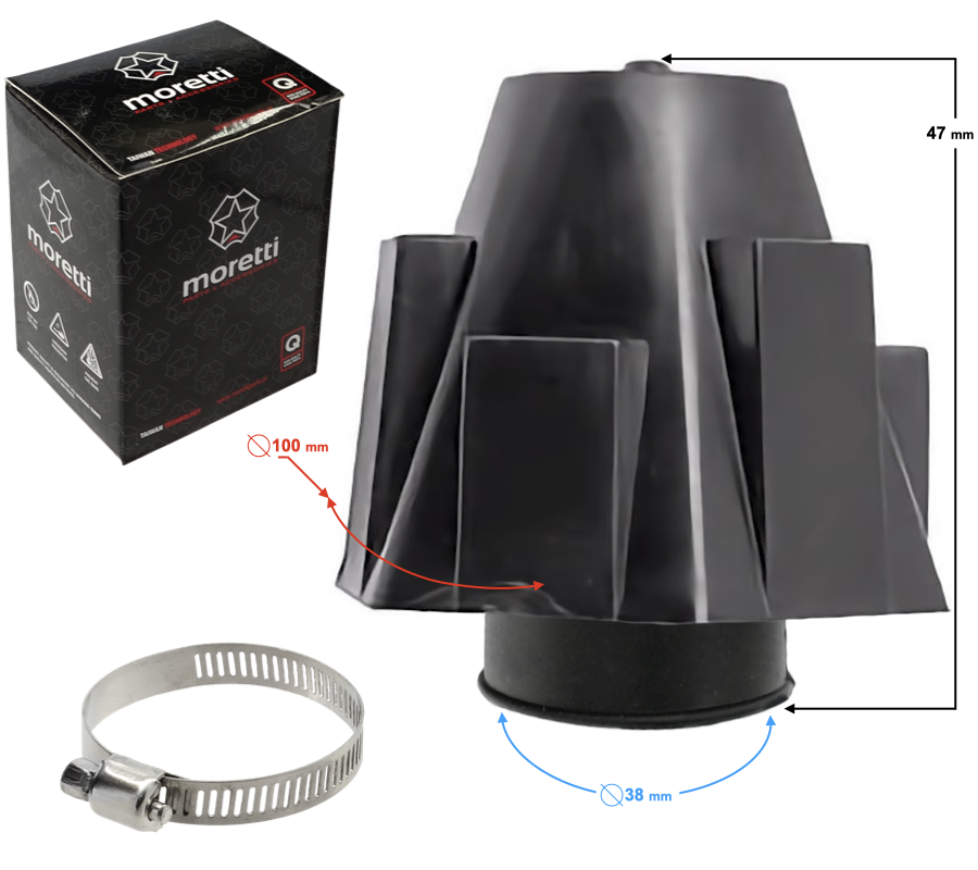 Filtr powietrza, stożkowy zabudowany 38mm /// MorettiKod produktu: FPSJOY003