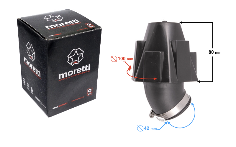 Filtr powietrza, stożkowy zabudowany - kątowy (45°) 42mm /// MorettiKod produktu: FPSJOY007
