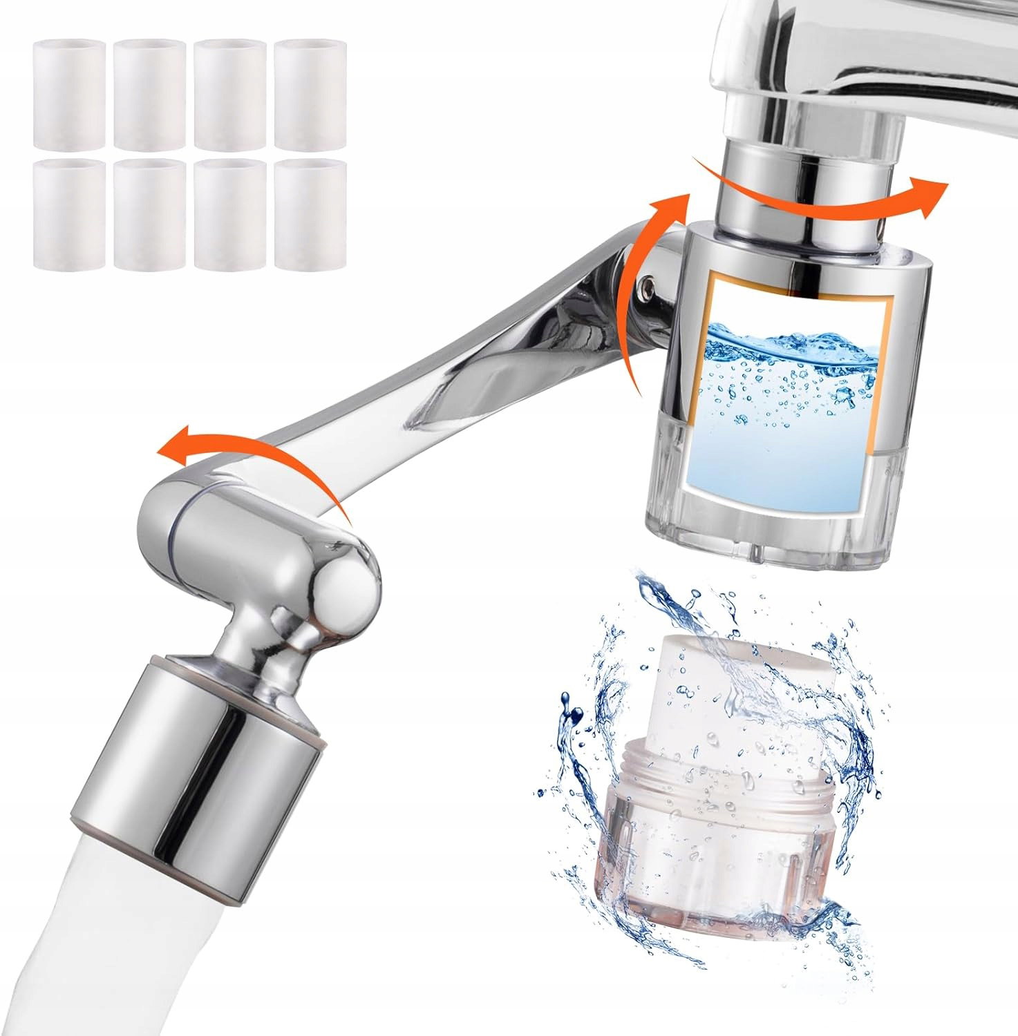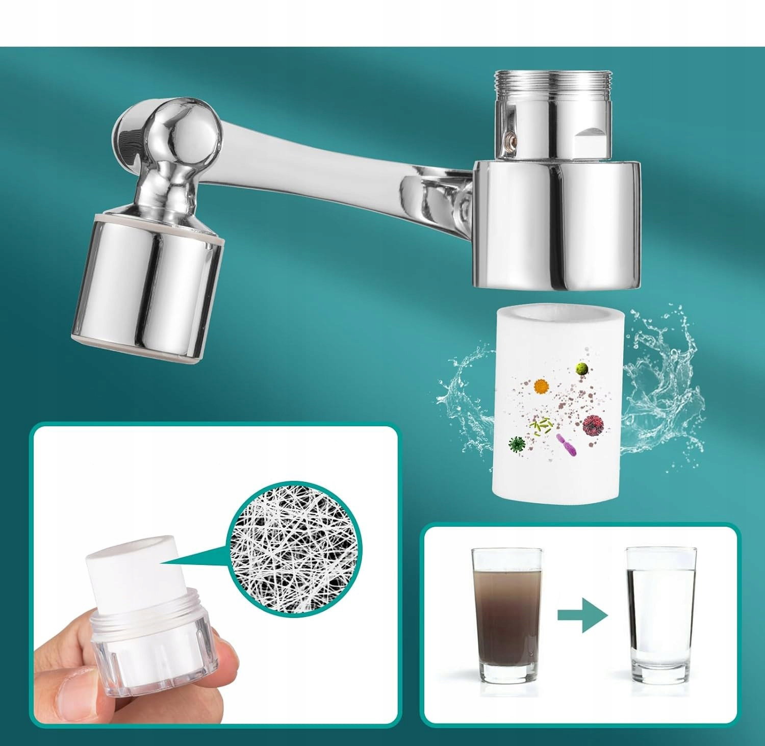 Filtr do wody, kran, 1080°, wychylny, 2 tryby, przedłużenie kranu z 8 filtrami, perlatory do kranów, można usunąć piasek i inne szkodliwe substancje