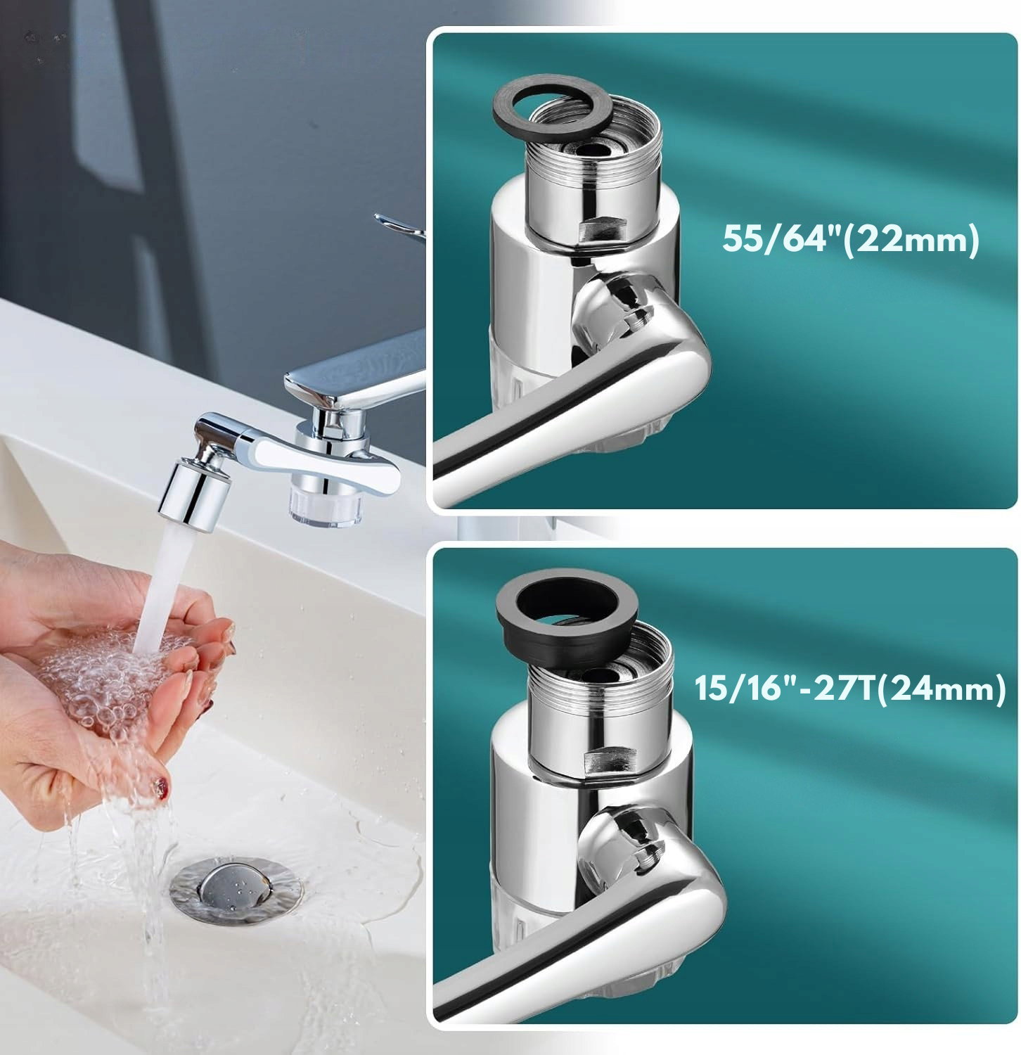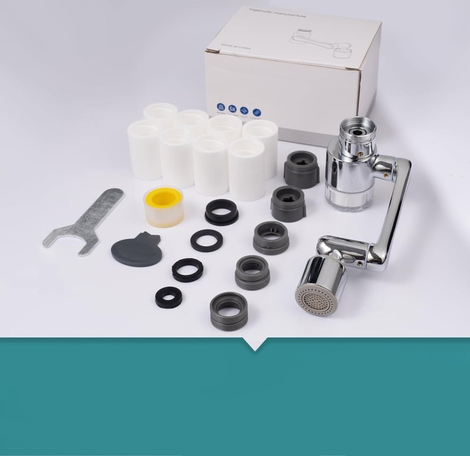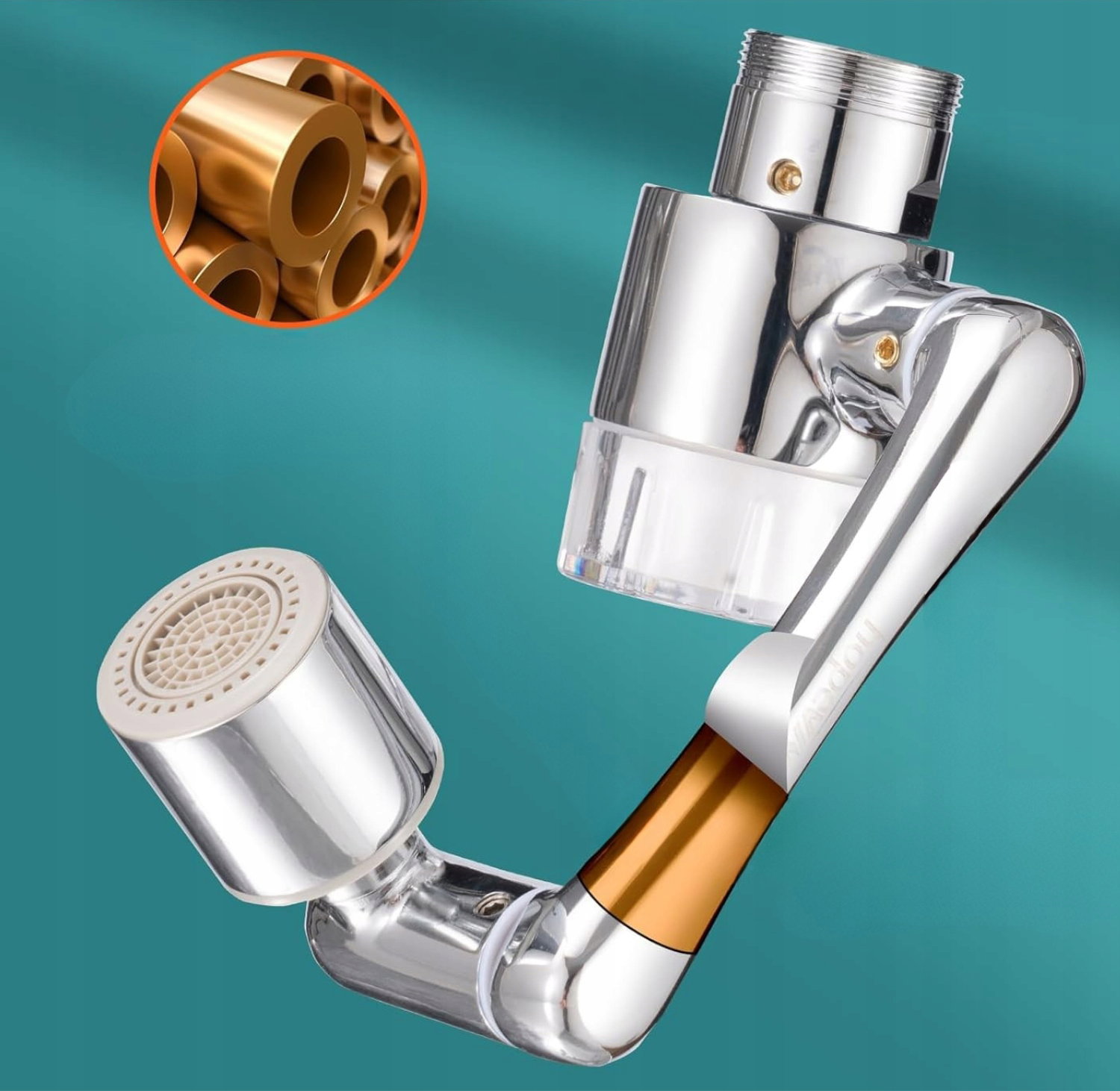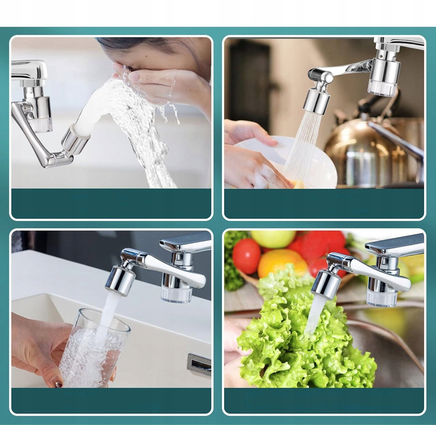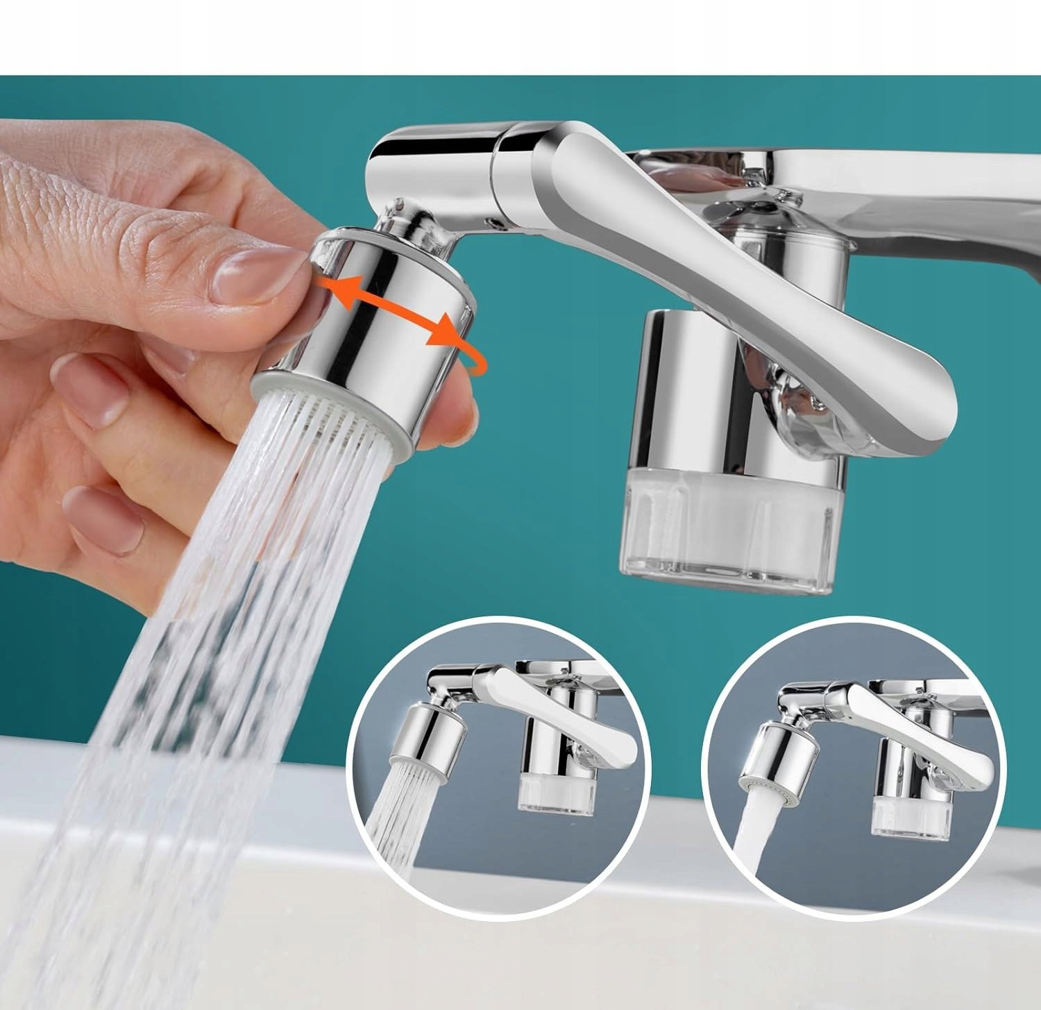 - Zastosowanie: zestaw przeznaczony do montażu na kranach w kuchni lub łazience, gdzie wymagane jest lepsze ukierunkowanie strumienia wody. Sprawdza się podczas mycia twarzy, zębów, włosów oraz płukania owoców i warzyw.