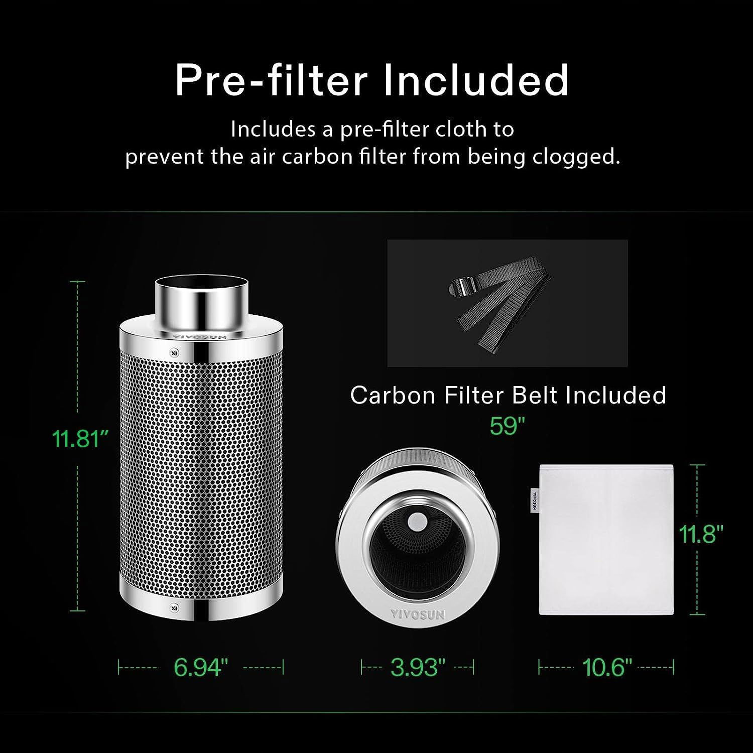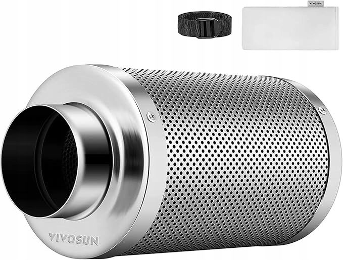 - Doskonała kontrola zapachu: filtr węglowy VIVOSUN jest wykonany z wysokiej jakości australijskiego węgla aktywnego RC 412 z 1200 IAV. Skutecznie pomaga w usuwaniu ostrych zapachów i chemikaliów. Łóżko węglowe o grubości 38 mm o dużej mikroporowatości zapewnia większą chłonność.