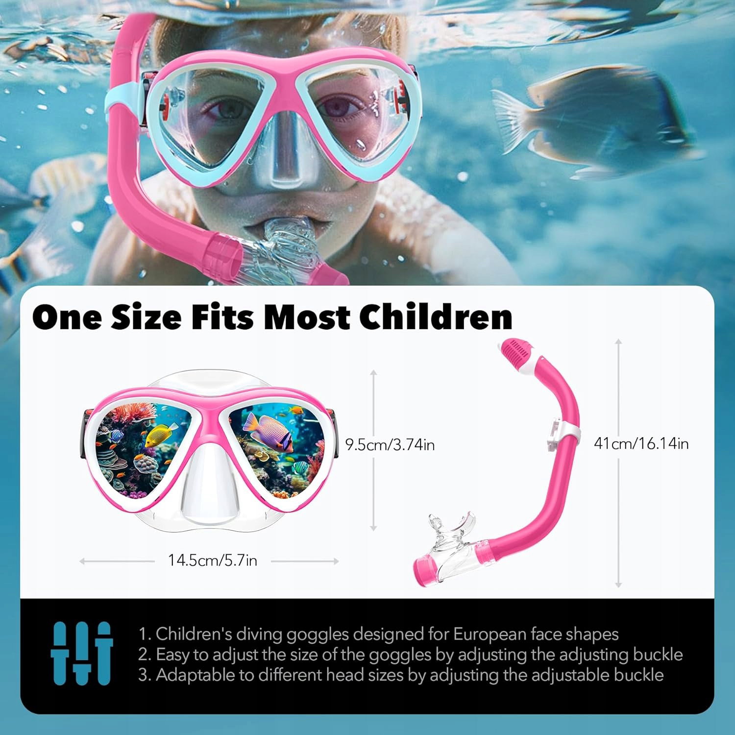 ?[Regulowany design z klamrami]Nasz zestaw do nurkowania dla dzieci z osłoną na nos jest idealny dla kształtów twarzy dzieci (chłopców, dziewcząt i nastolatków) w wieku od 6 do 16 lat. Pasek maski do nurkowania dla dzieci można łatwo regulować, naciskając przyciski po obu stronach maski, a klamry trzymają paski bezpiecznie na swoim miejscu, nie zsuwając się w wodzie. Regulowane klamry po obu stronach pomagają zabezpieczyć maskę przed zsuwaniem się.