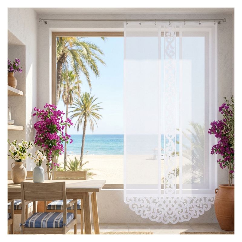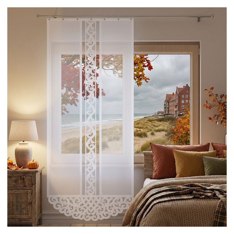 Dzięki naszej białej panelowej firanie, Twoje wysokie okna będą prezentować się atrakcyjnie i nowocześnie - z naszą ozdobą okienną wprowadzisz efektowny akcent dekoracyjny do wnętrza swojego domowego zacisza.
