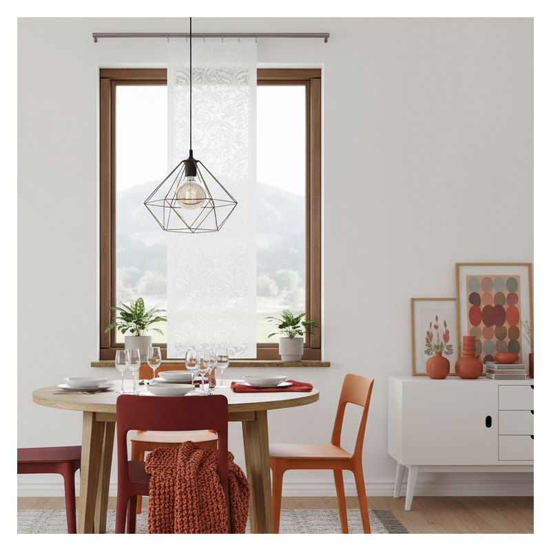 Metrażową firanę panelową Homer możesz zawiesić w oknie, albo w formie nakładki (bieżnika) ozdobić nią stół lub ławę.
