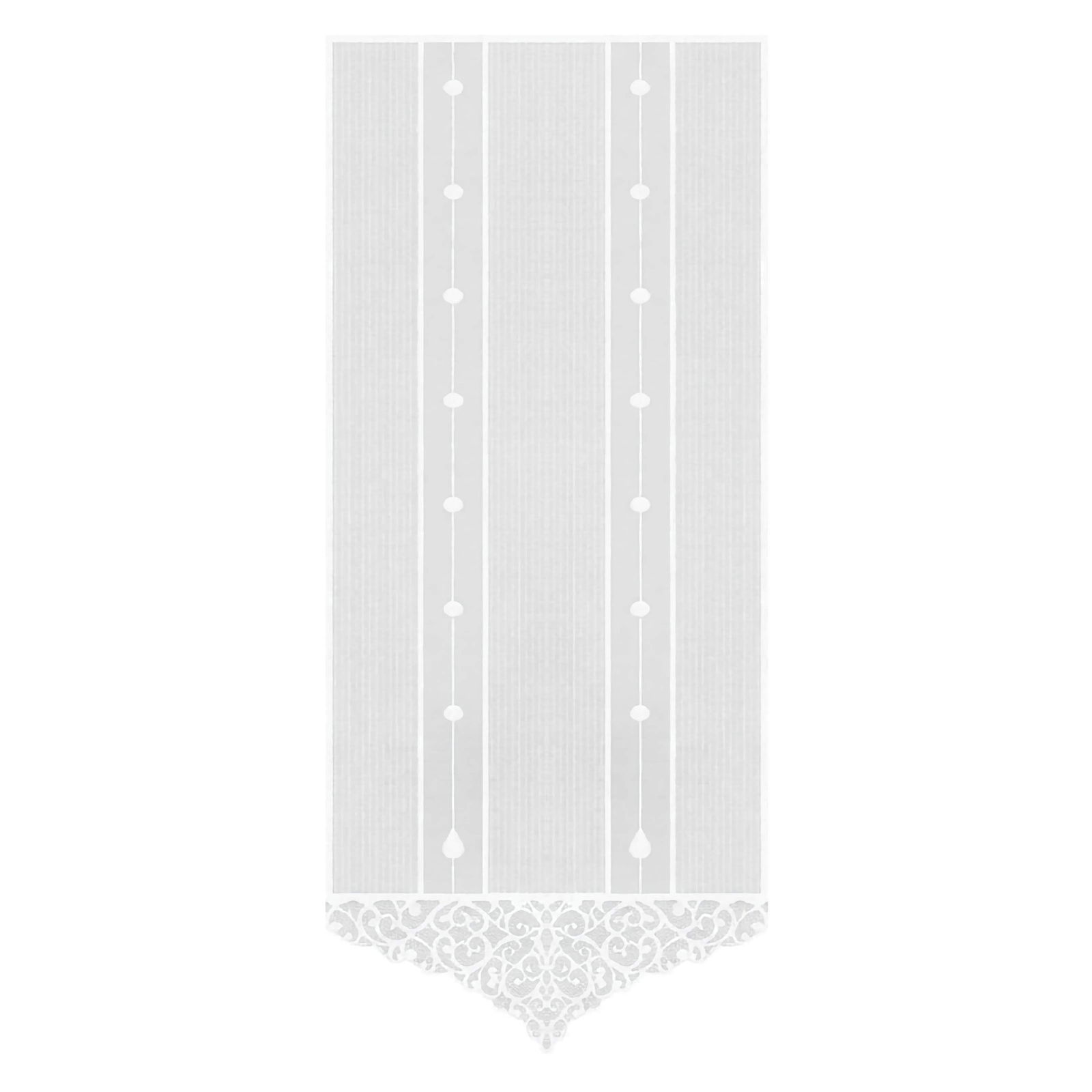 Nasza biała żakardowa dekoracja przez długi okres czasu będzie atrakcyjną ozdobą każdego wysokiego okna, w którym ją zawiesisz.