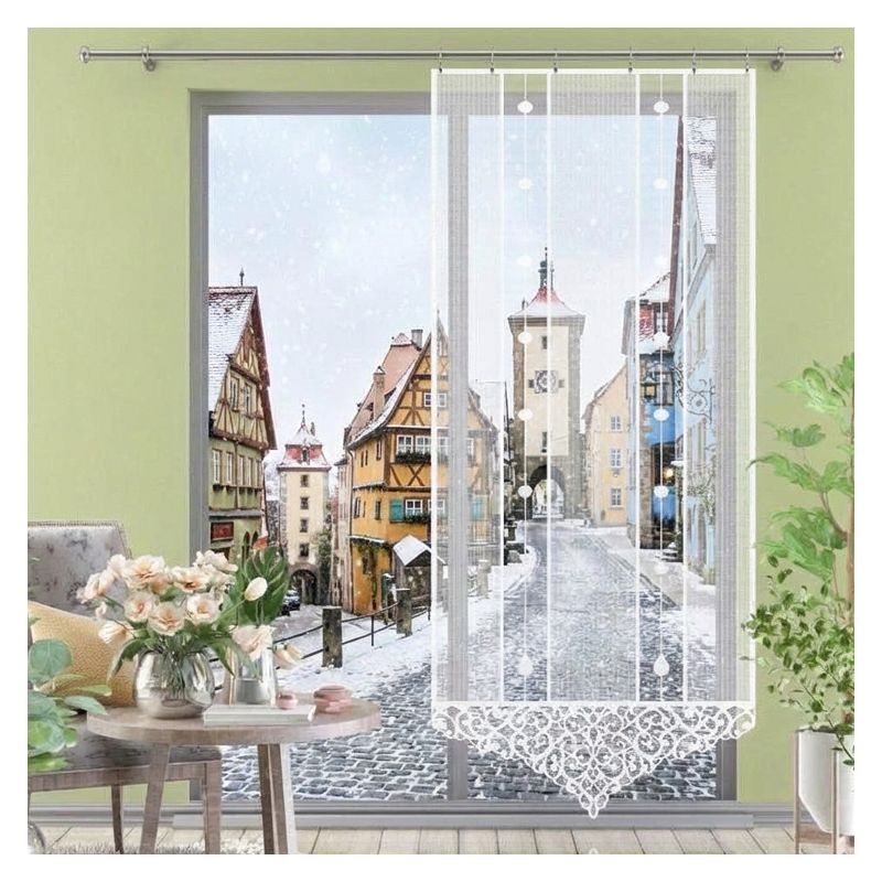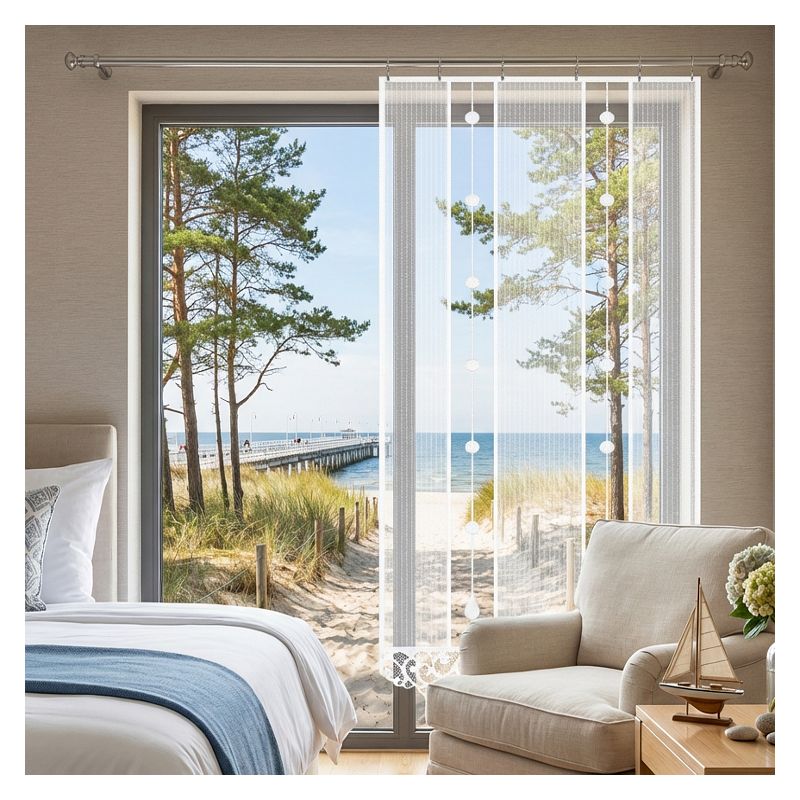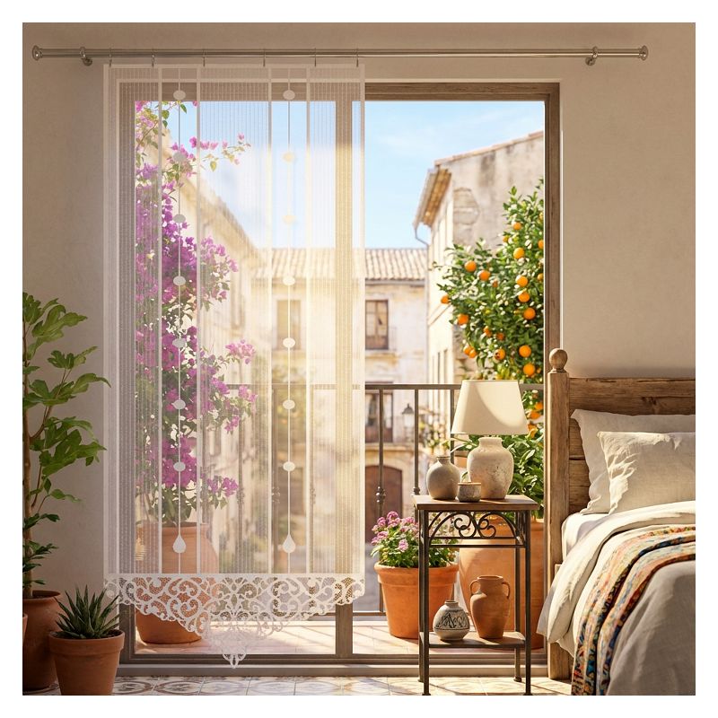 Biała panelowa firanka ozdobi każde wysokie okno w Twoim mieszkaniu lub domu, dodając mu eleganckiego designu i przyjemnego dla oka wyglądu.