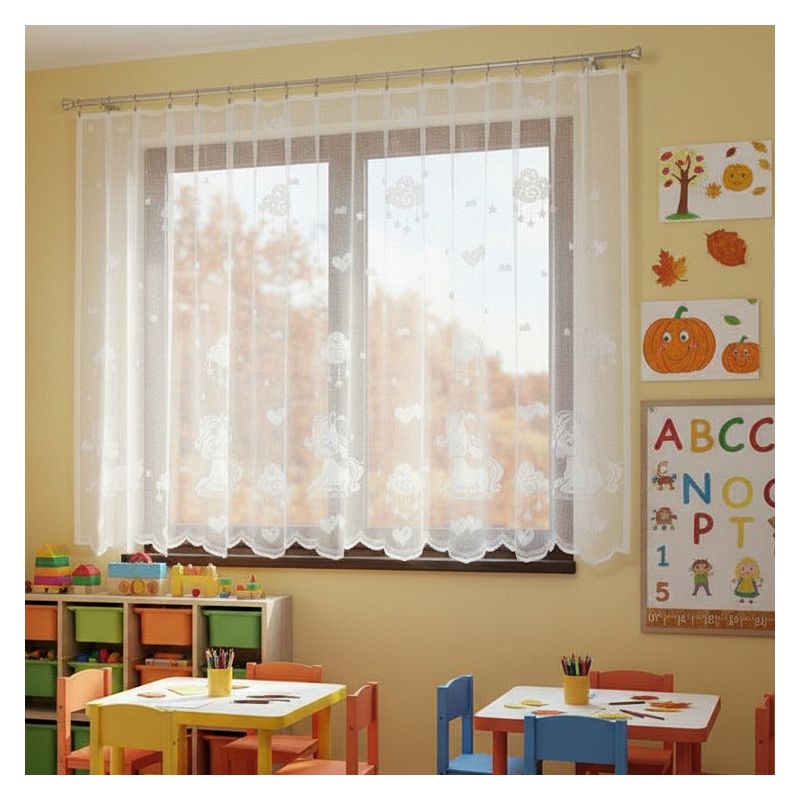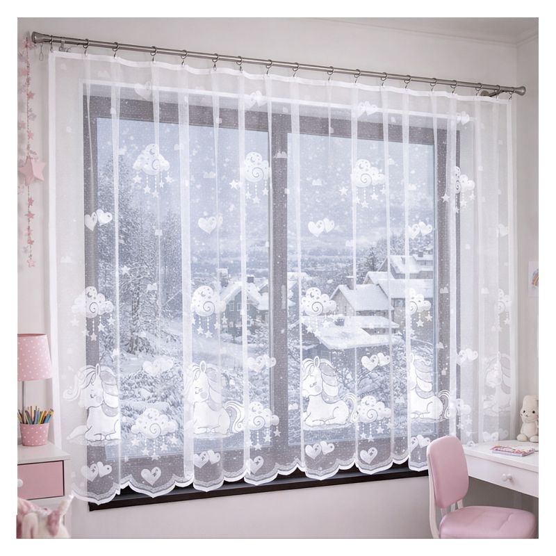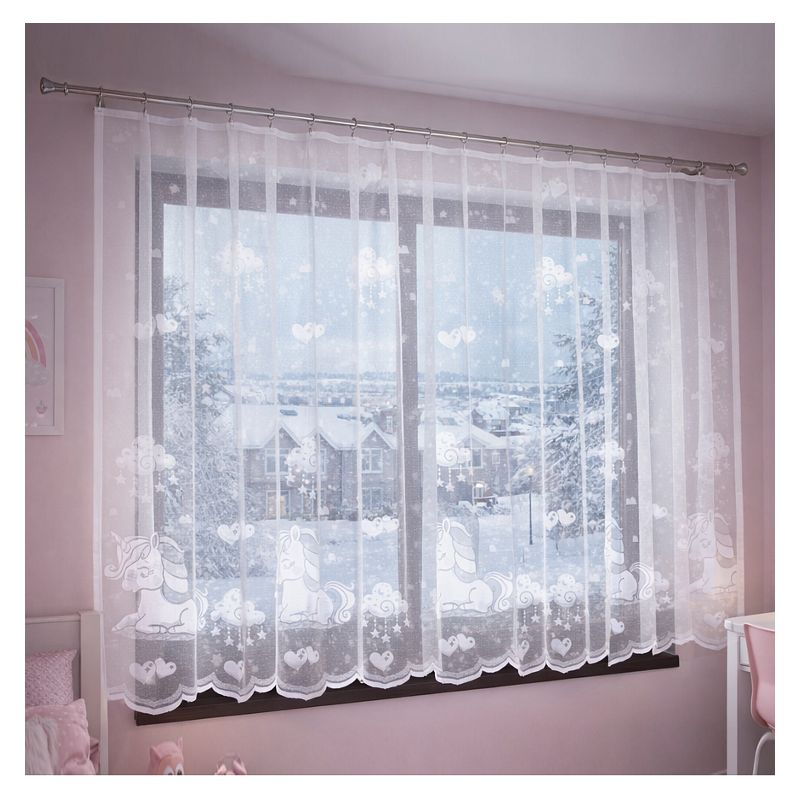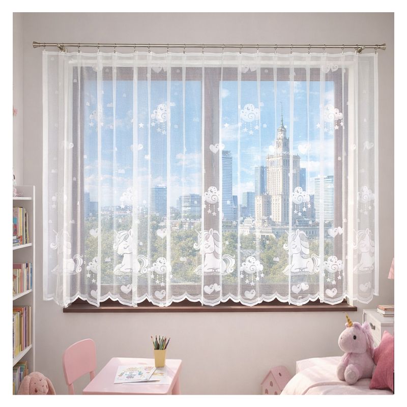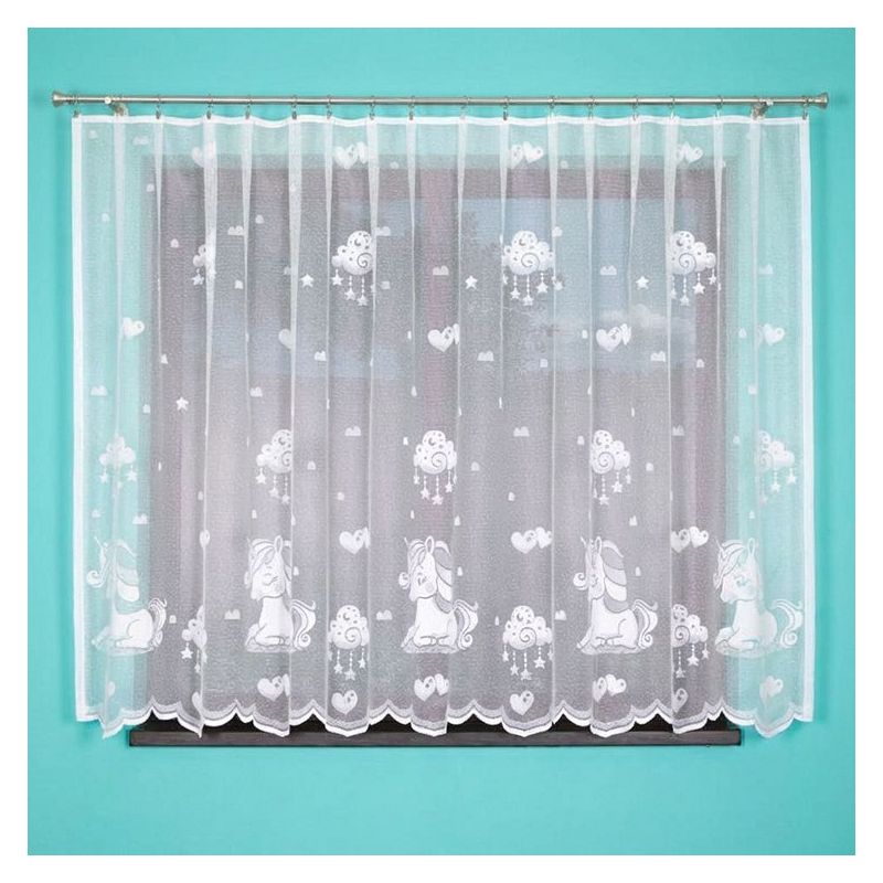 Dzięki solidnemu wykonaniu oraz zastosowaniu trwałego żakardu, firanka Biały Jednorożec w rozmiarze 220 x 120 cm przez długi czas zachowa swój atrakcyjny wygląd w oknie Twojej córki.