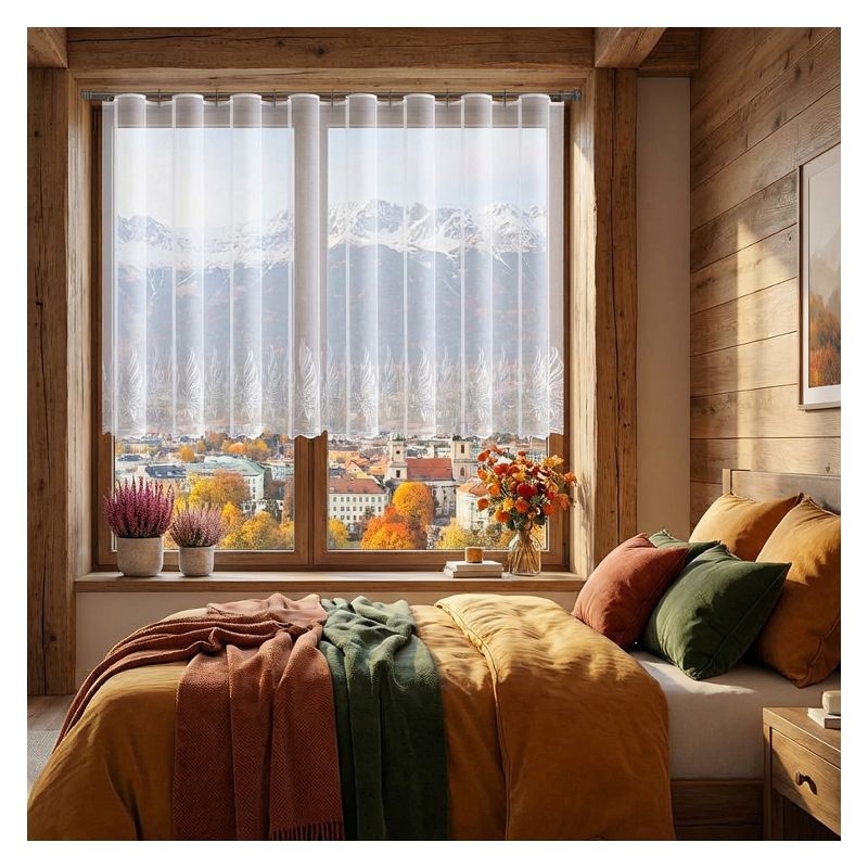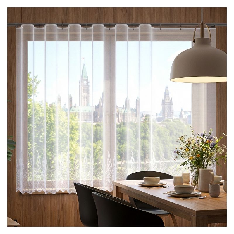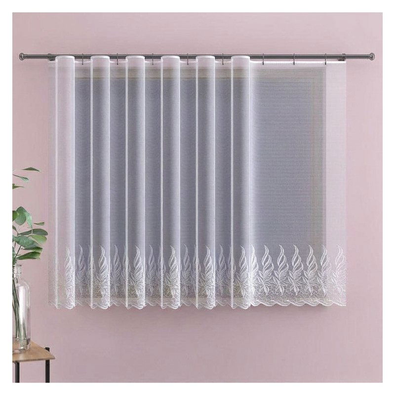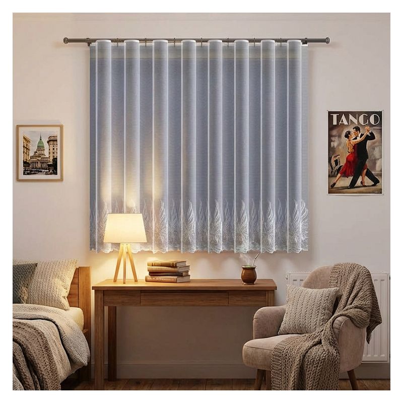 Firana wyprodukowana została z estetycznego żakardu, który cechuje się długoletnią trwałością oraz przyjemnym dla oka wyglądem.