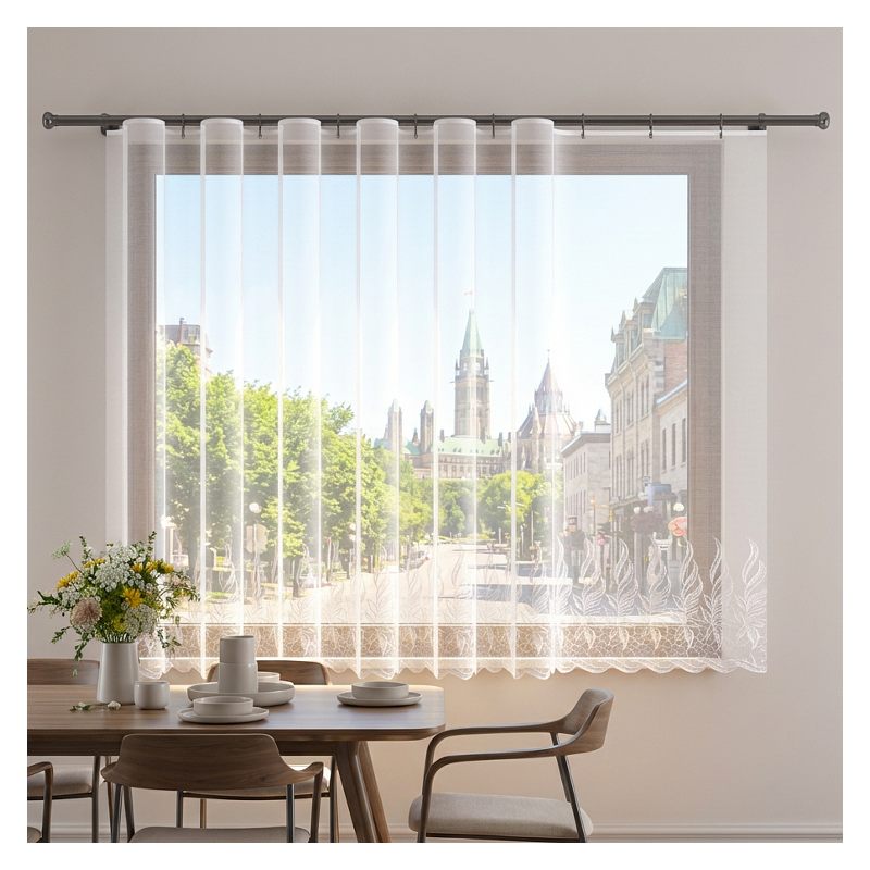 Żakardowa dekoracja okienna świetnie sprawdzi się w codziennym użytkowaniu, zachowując swój elegancki wygląd przez długi okres czasu.