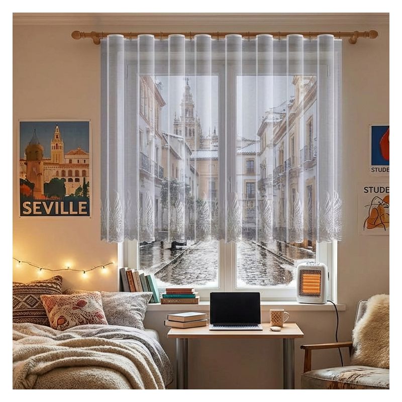 Biała żakardowa dekoracja to doskonały wybór dla tych, którzy chcą stworzyć w domowym zaciszu harmonijną i przytulną atmosferę, jednocześnie na wiele sezonów zapewniając sobie wysokiej jakości okienną aranżację.