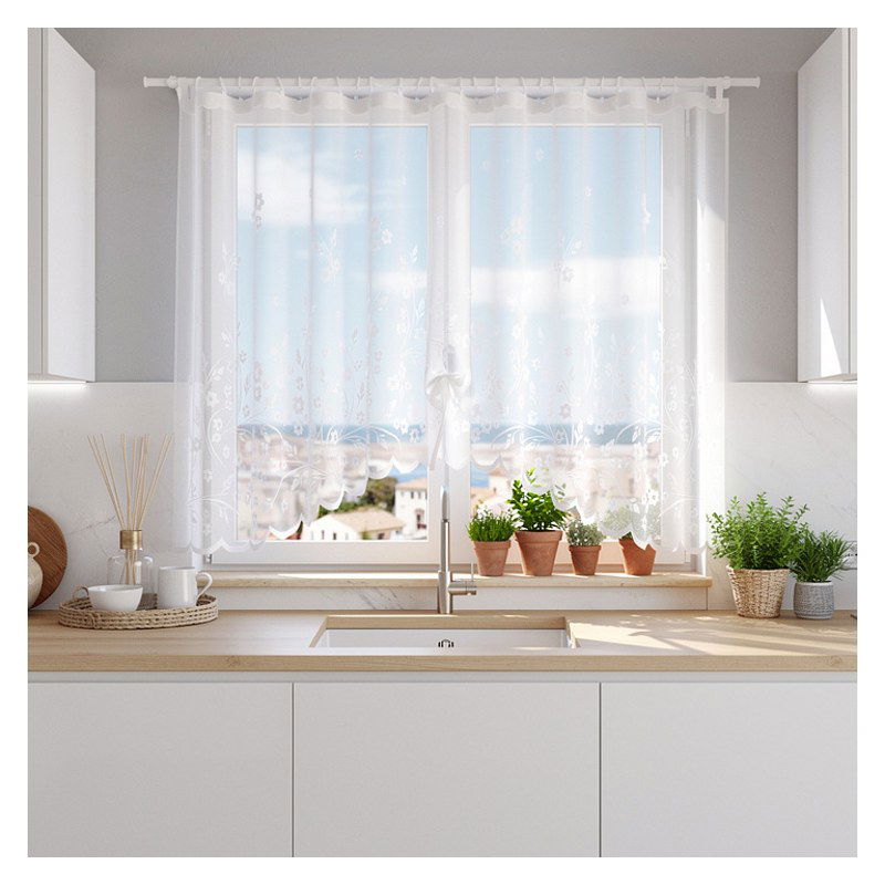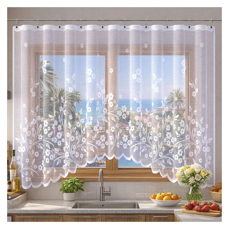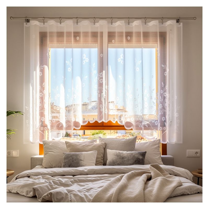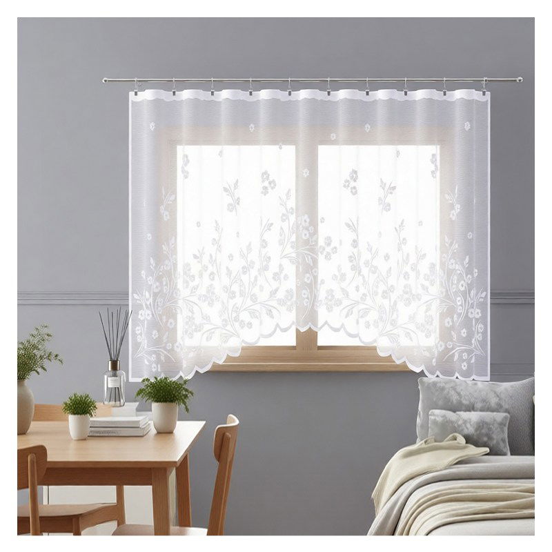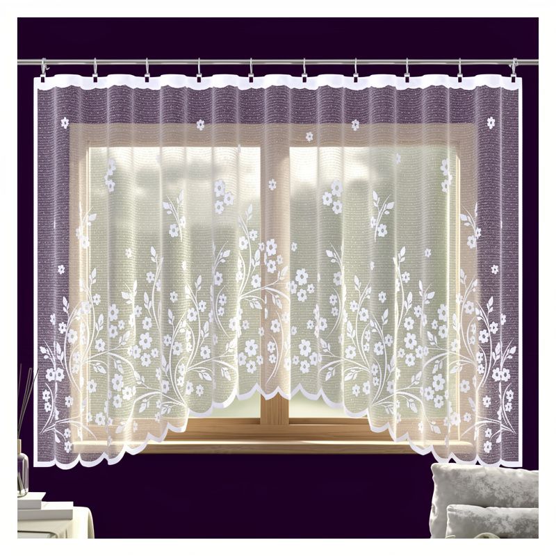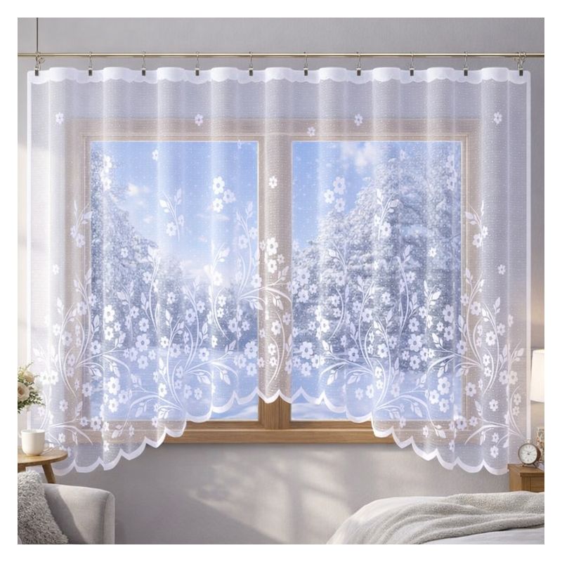 Zawieś w swoim oknie elegancką białą firanę Covanta - kwiatowa dekoracja stanie się centralnym punktem Twojego domowego zacisza.