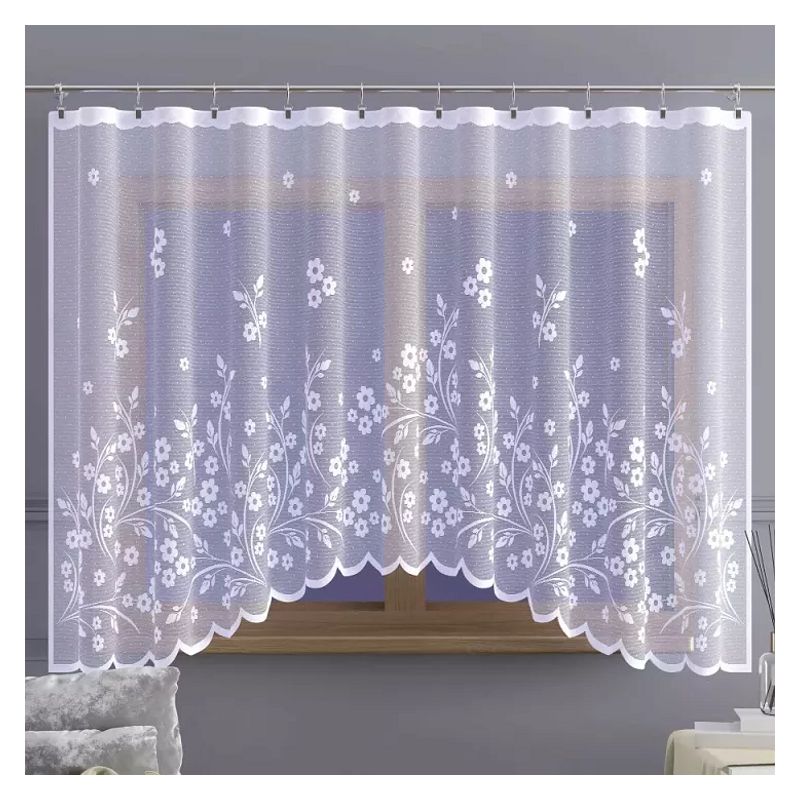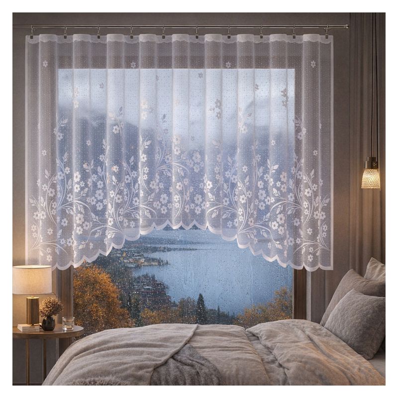 Połączenie kwiatowego motywu, estetyki żakardu oraz klasycznej białej kolorystyki sprawia, że gotowa firanka Covanta to doskonała ozdoba dla osób ceniących sobie wysoką jakość wykonania oraz elegancki wystrój okna.