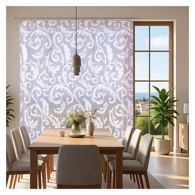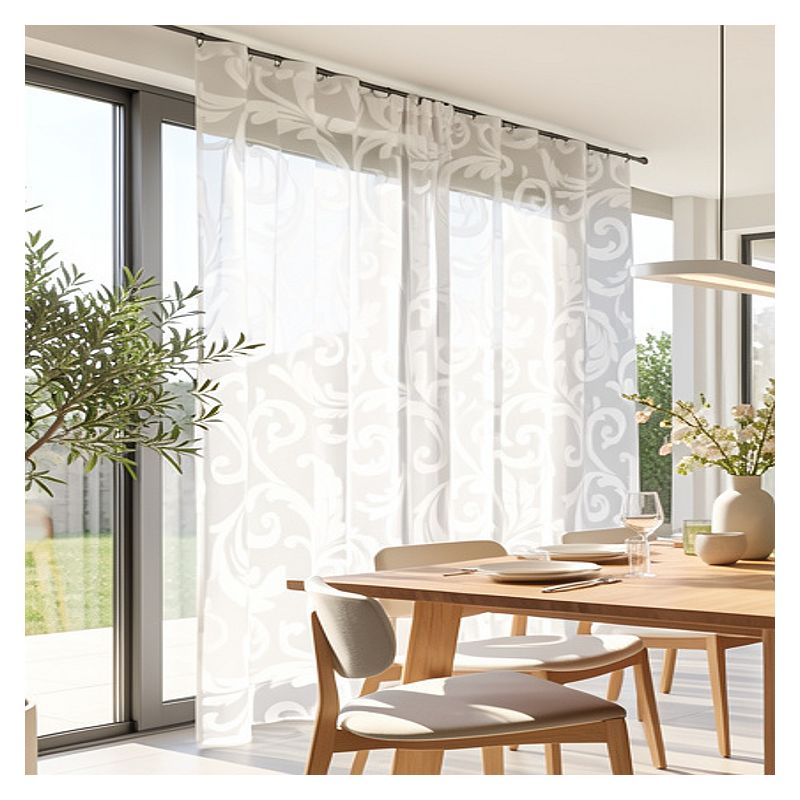 Metrażowa firanka Dulles wprowadzi modną stylistykę dekoracyjną i ponadczasową elegancję do wnętrza Twojego domu lub mieszkania.