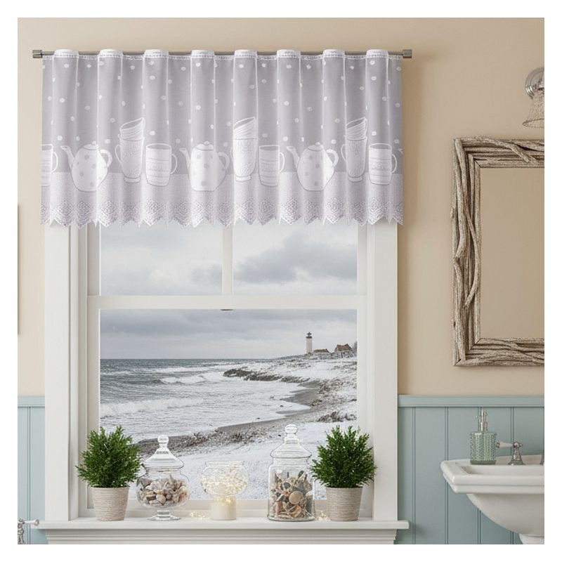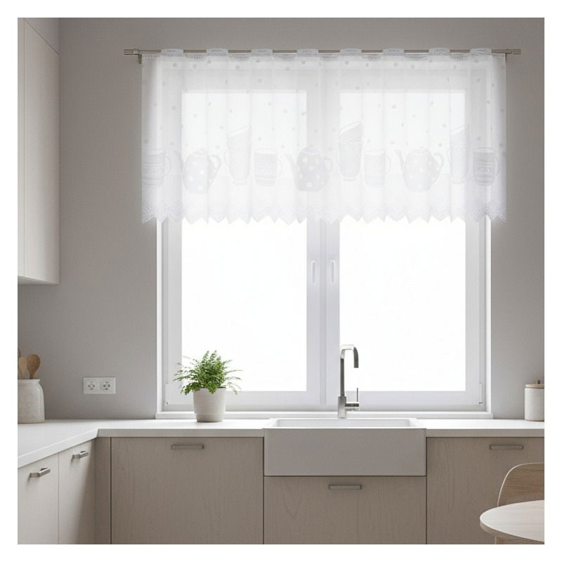 Firanka Dzbanki to estetyczna dekoracja, którą łatwo dostosujesz się do aranżacyjnego stylu swojej kuchni lub jadalni.