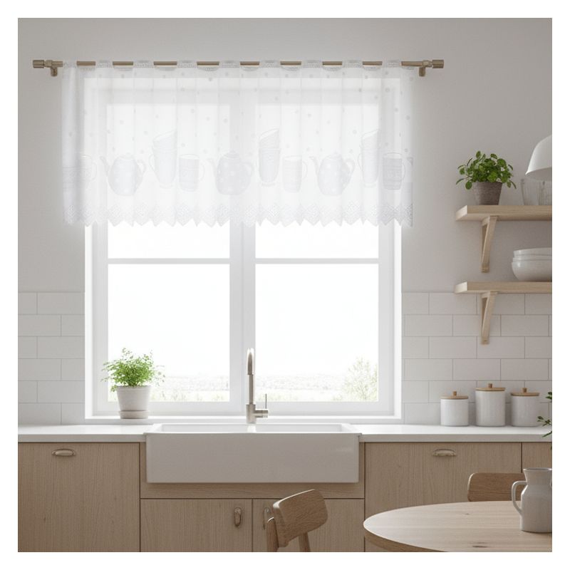 Na długi okres czasu zapewnij sobie urokliwy wystrój wnętrza kuchni lub jadalni dzięki naszej eleganckiej, białej okiennej dekoracji.