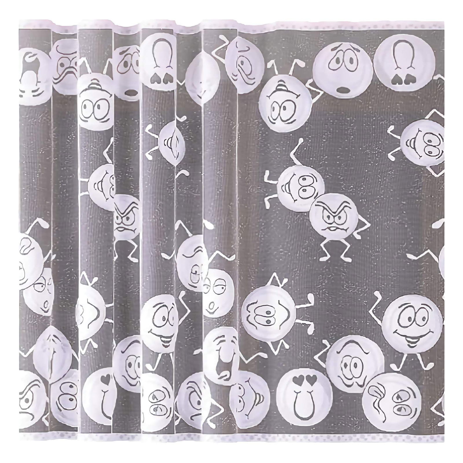 Wprowadź do wystroju pokoju swojego dziecka odrobinę radości i pozytywnej energii dzięki firanie metrażowej Emotki o wysokości 150 cm.