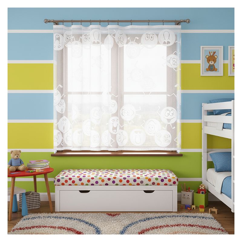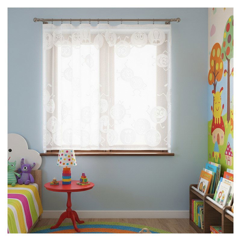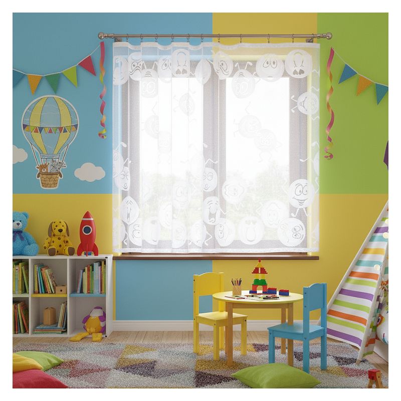 Okienna ozdoba z wesołym wzorem zdobniczym sprawia, że firanka Emotki doskonale sprawdzi się jako dekoracja w pokoju Twojego dziecka, tworząc atmosferę sprzyjającą zabawie, nauce i odpoczynkowi.