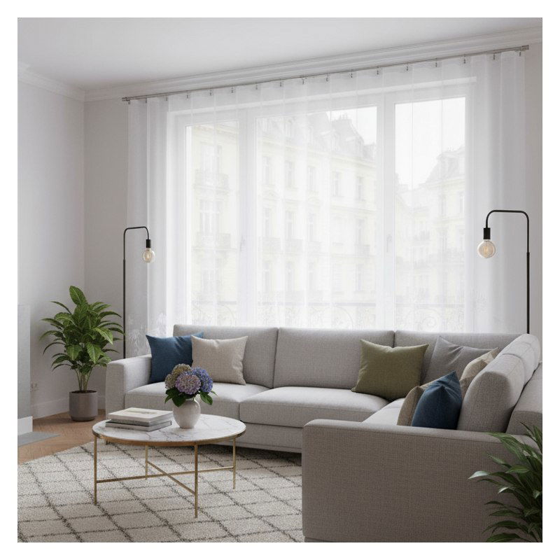 Dekoracja oferowana jest w sprzedaży na metry bieżące, co umożliwia Ci precyzyjne dopasowanie szerokości firany do wymiaru każdego okna i Twoich indywidualnych potrzeb aranżacyjnych.