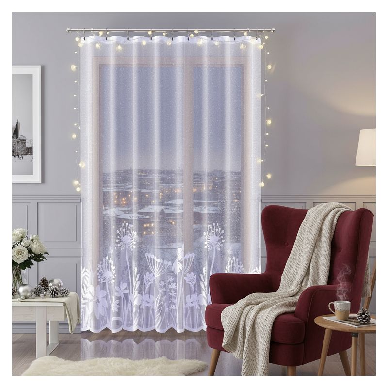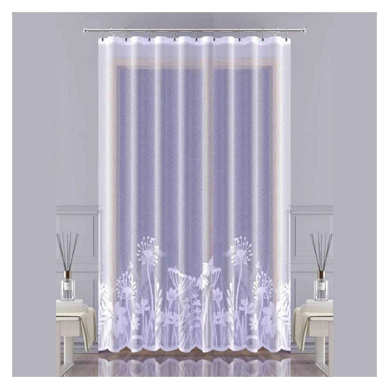 W dolnej części żakardowa firanka upiększona jest zdobniczym pasem z roślinno-kwiatowym motywem, który zapewnia jej urokliwy wygląd i doda Twojemu wnętrzu subtelności oraz zwróci uwagę gości odwiedzających Twój dom.