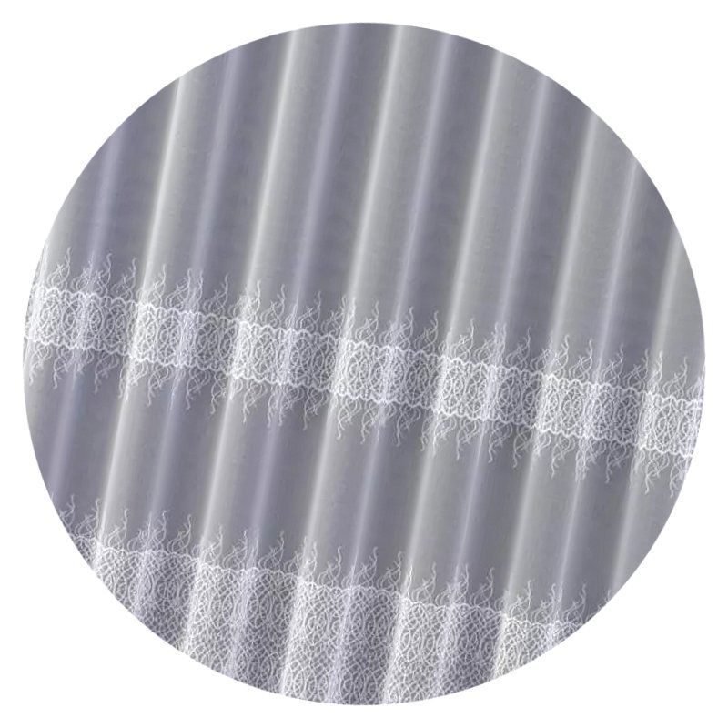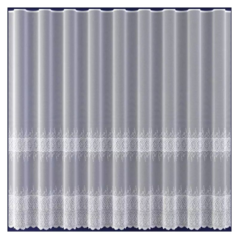Dodatkowo, dwa ozdobne pasy umieszczone w dolnej części białej firanki dodają jej uroku i przyciągną uwagę odwiedzających Cię gości.