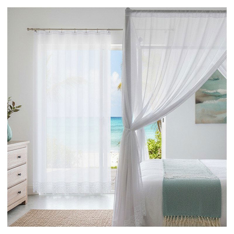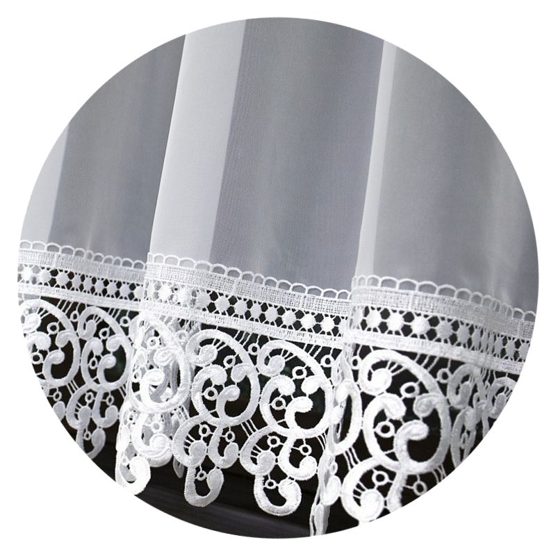 Dolna część długiej woalowej firanki Gozo wykończona jest bawełnianą gipiurą, co nadaje jej urokliwego designu i modnej stylistyki.