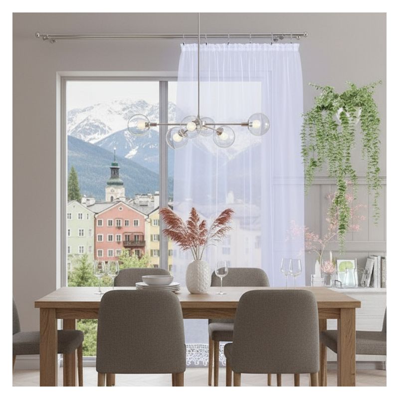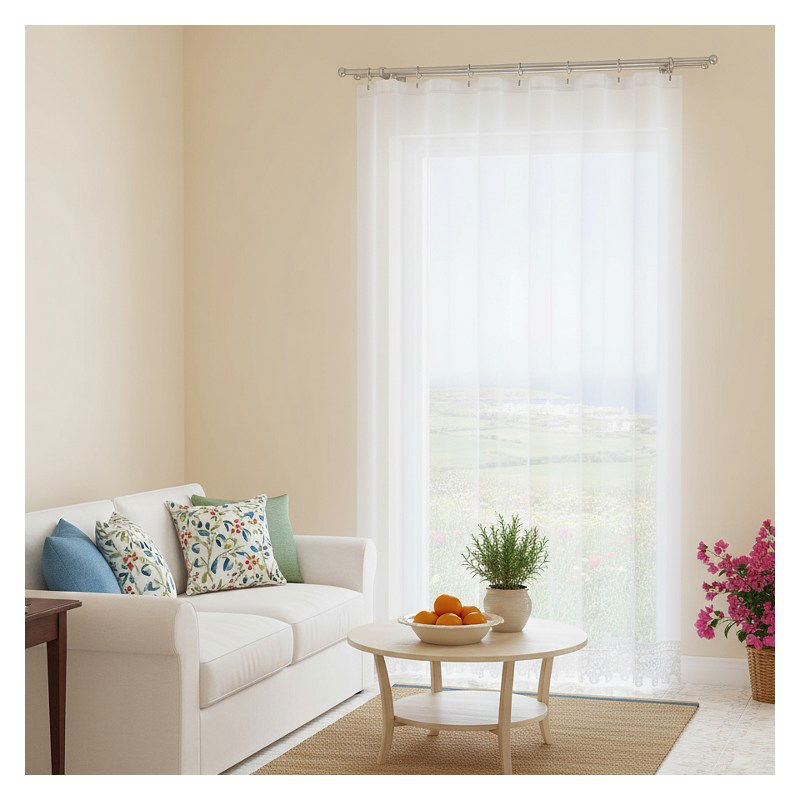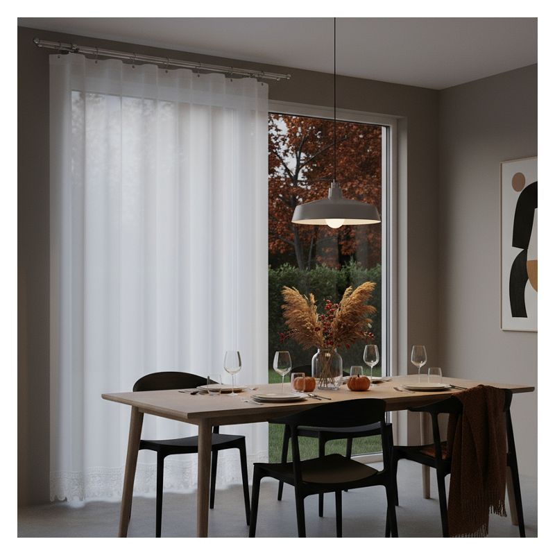 Długa woalowa firana zapewni estetyczny wystrój Twojego salonu, sypialni, pokoju gościnnego lub dziennego oraz jadalni.
