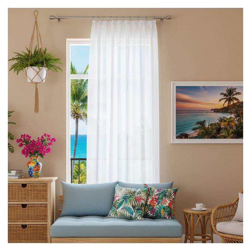 Uniwersalny biały kolor firany Gozo pasuje doskonale do różnorodnych aranżacji wykończenia wnętrz - od minimalistycznych i nowoczesnych, po klasycznie i tradycyjnie urządzone.