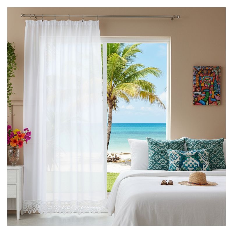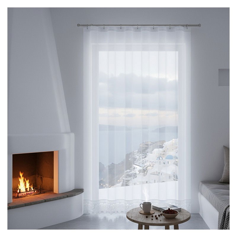 Dolna część długiej woalowej firanki Gozo wykończona jest bawełnianą gipiurą, co nadaje jej urokliwego designu i modnej stylistyki.