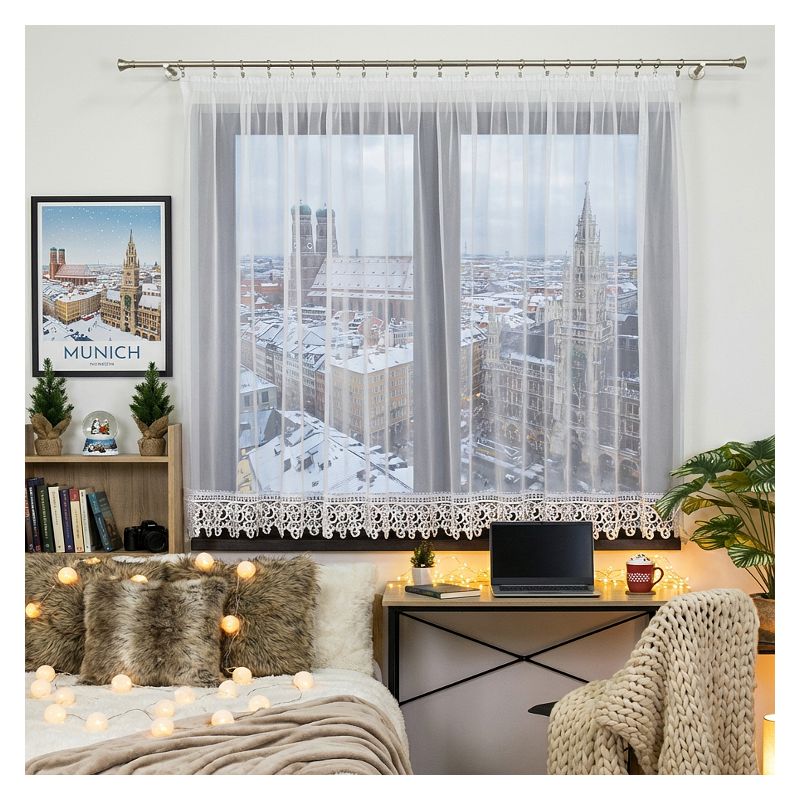 Biała woalowa dekoracja na wiele lat stanie się piękną ozdobą każdego Twojego okna, a Ty będziesz cieszył się jego eleganckim designem.
