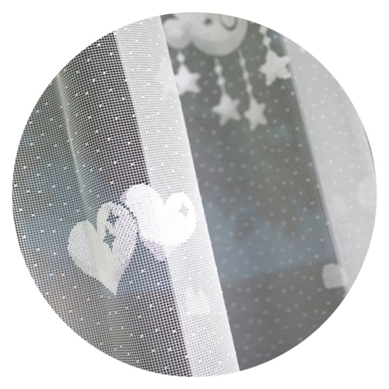 Żakardowy materiał doskonale przepuszcza naturalne światło słoneczne, subtelnie je rozpraszając i rozjaśniając wnętrze dziecięcego pokoju.