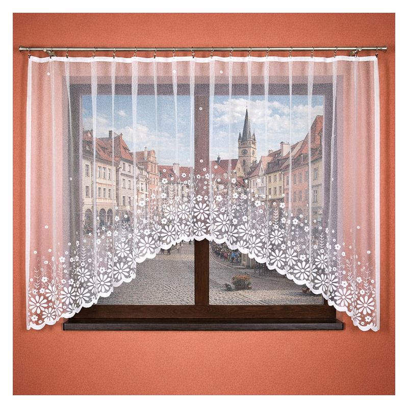 Dzięki wymiarom 300 x 130 cm, biała firanka z estetycznego żakardu doskonale sprawdzi się jako modna ozdoba dla większości standardowych okien.