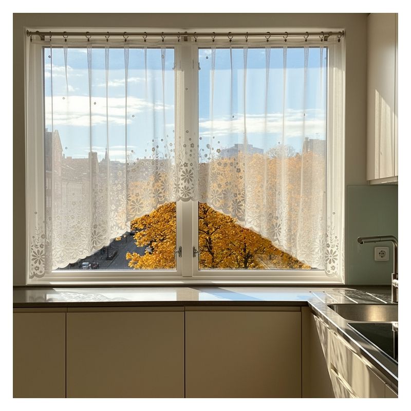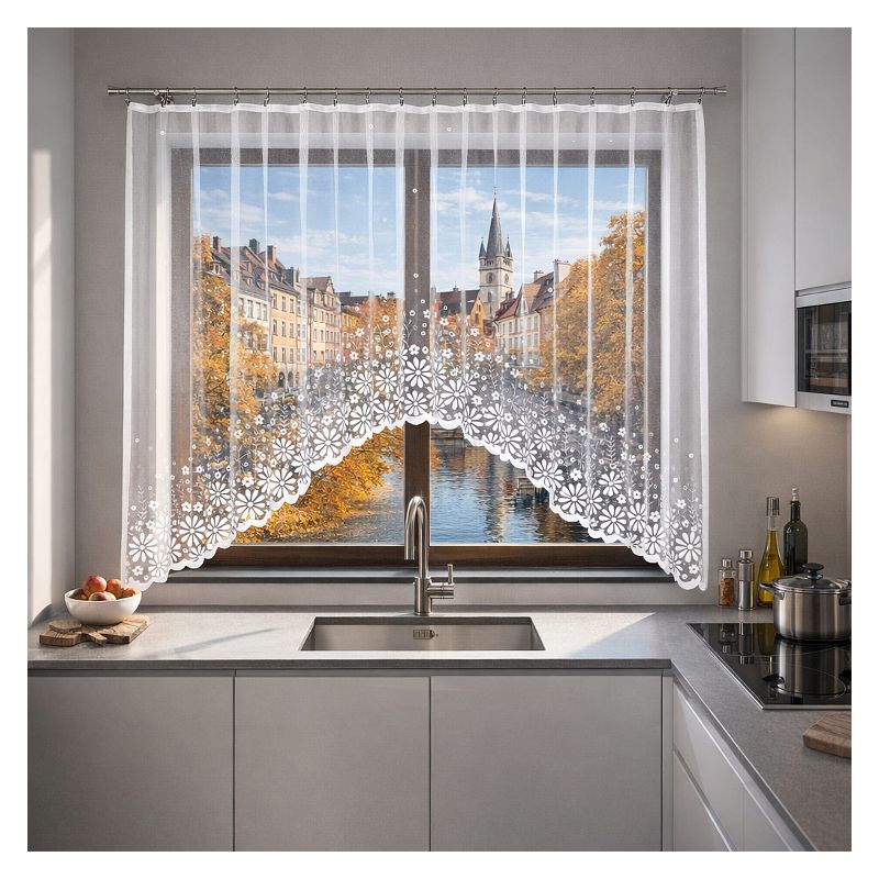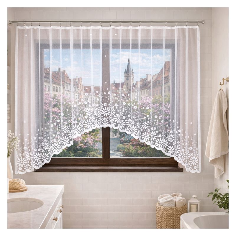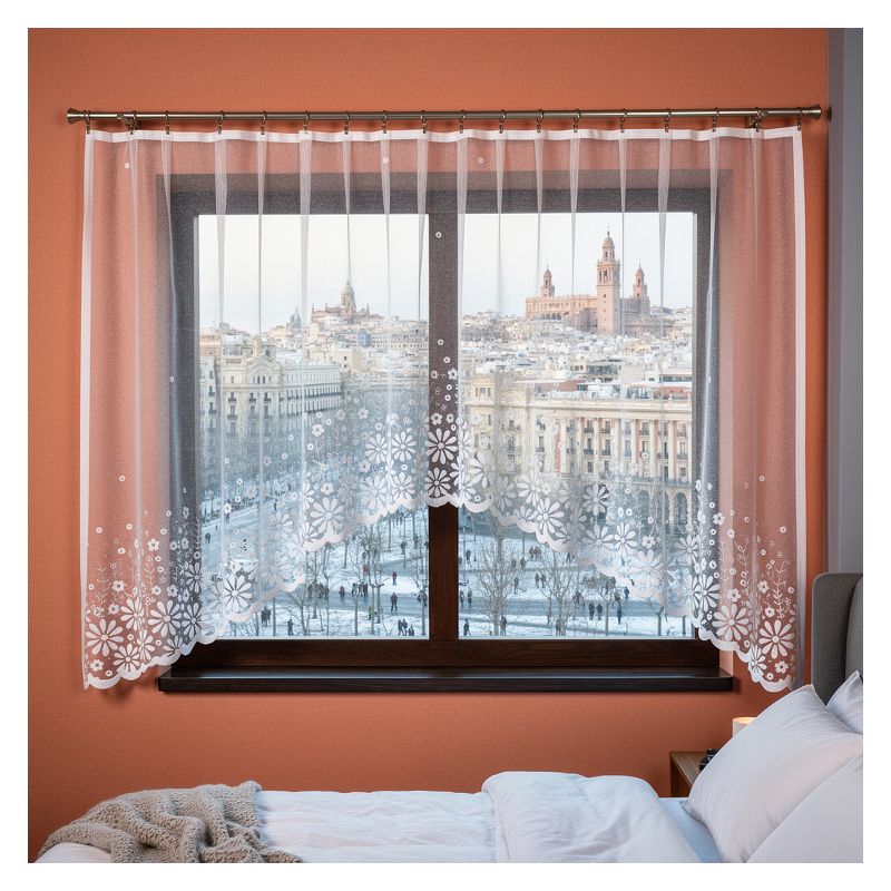 Kwiatowa gotowa firana na długi okres czasu stanie się urokliwą ozdobą każdego Twojego okna, przyciągając uwagę odwiedzających Cię gości.