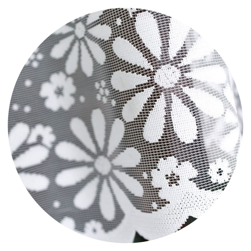 Biel żakardowego materiału w połączeniu z zawsze modnym kwiatowym motywem zdobniczym sprawia, że firanka optycznie powiększa przestrzeń i wprowadzi do każdego Twojego pomieszczenia nutkę lekkości oraz świeżości.