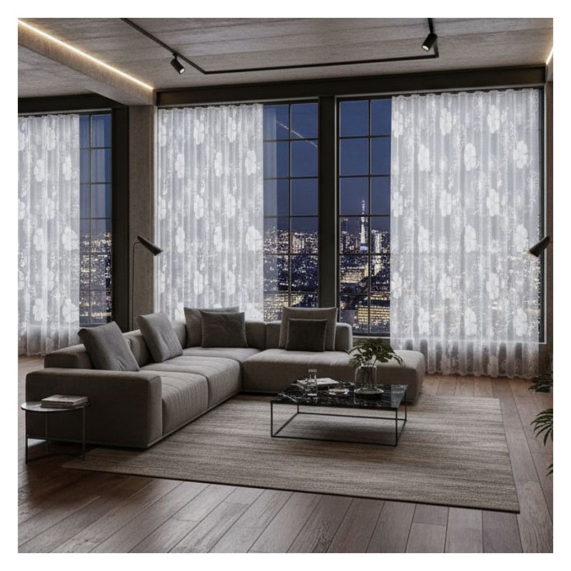 Jeśli szukasz estetycznej dekoracji okiennej upiększonej modnym kwiatowym wzorem zdobniczym, to nasza metrażowa firanka Pilo jest dla Ciebie odpowiednim wyborem.