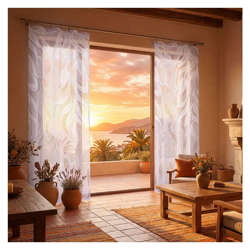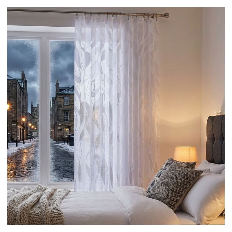 Uniwersalny biały kolor długiej firany Policot bezproblemowo skomponuje się z różnymi aranżacyjnymi stylami, wprowadzając do każdego Twojego pomieszczenia jasność i poczucie przestronności.