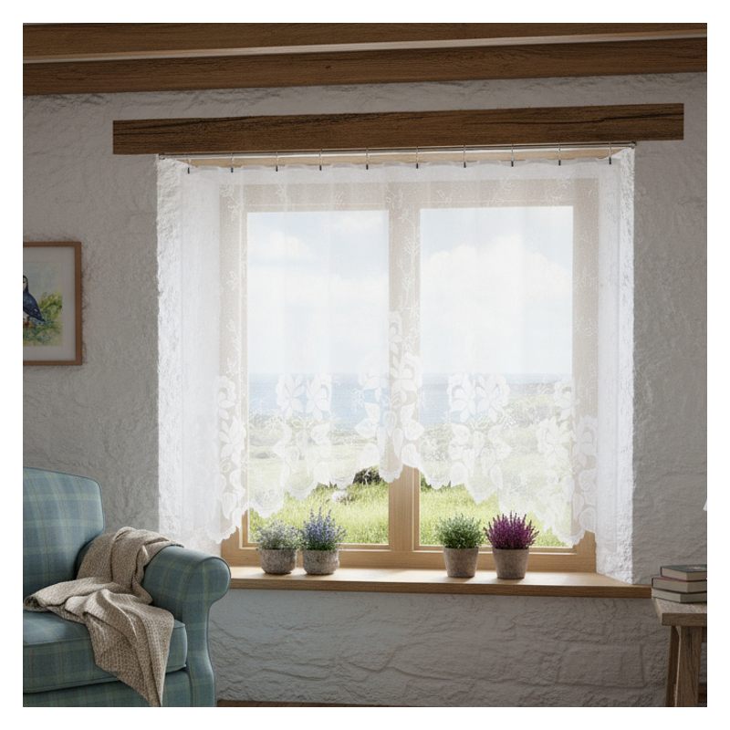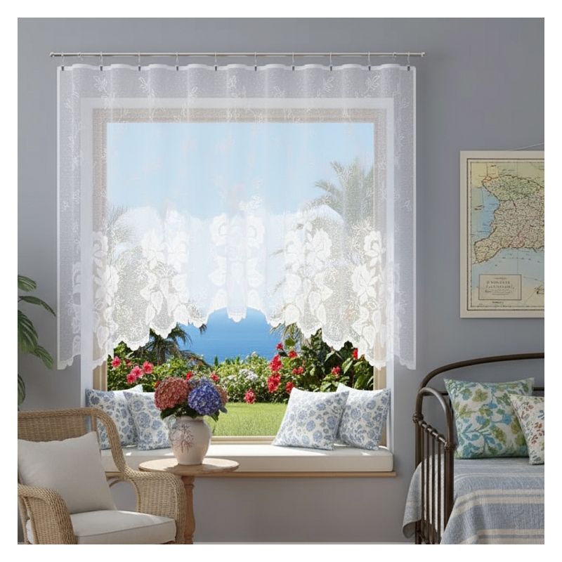 Dzięki gotowej firance z białego żakardu Portobello 300 x 160 cm Twoje domowe zacisze nabierze nowego blasku, a jej atrakcyjny wygląd i zawsze modny kwiatowy styl na długi okres czasu upiększy każde Twoje okno.