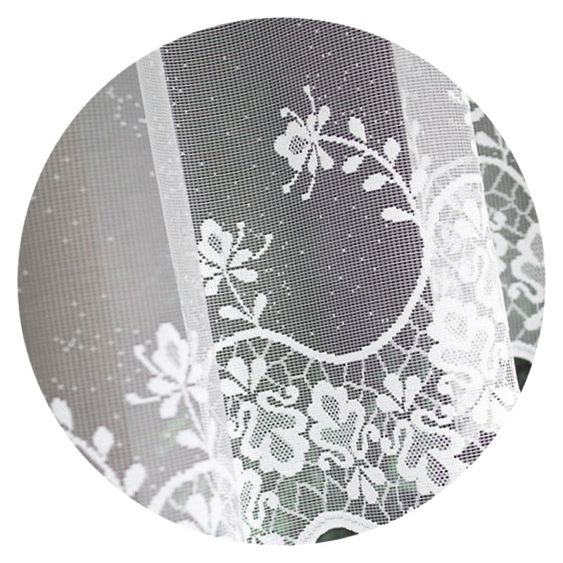 Biała firanka Rossart wyprodukowana została z wysokiej jakości żakardu. Żakard to elegancki materiał, ceniony przez naszych Klientów za swoją wieloletnią trwałość i estetyczny wygląd.