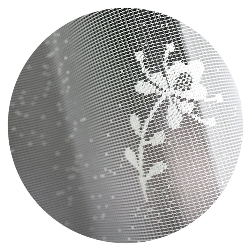 Biała dekoracja z estetycznego żakardu ozdobiona jest urokliwym kwiatowym motywem. Ten przyjemny dla oka i ponadczasowy wzór zdobniczy doda Twojemu wnętrzu elegancji i przyciągnie wzrok każdego odwiedzającego Cię gościa.