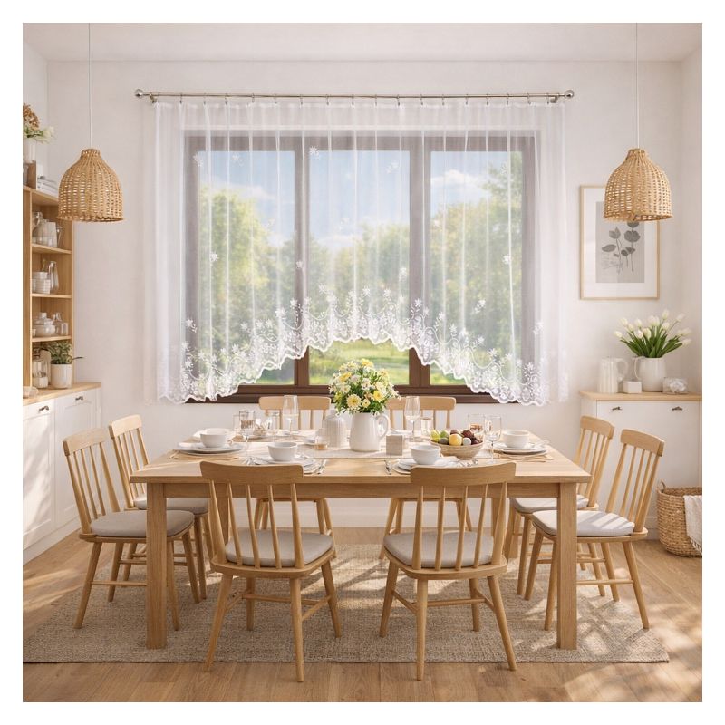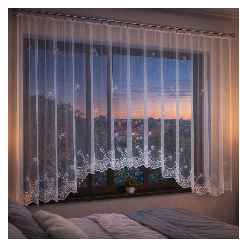 Dzięki tej estetycznej białej firance z kwiatowym motywem Twój dom zyska przyjemną i relaksującą atmosferę, a Ty będziesz cieszyć się atrakcyjnym wyglądem swojego okna przez wiele nadchodzących sezonów.
