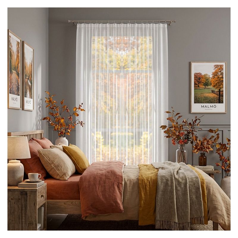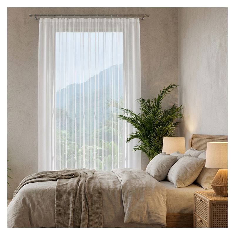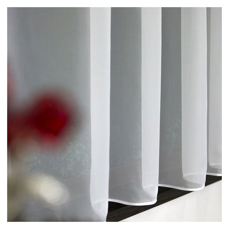 Woalowa firanka w uniwersalnym, klasycznym kolorze białym bezproblemowo dopasuje się do różnorodnych aranżacji wykończenia wnętrz.