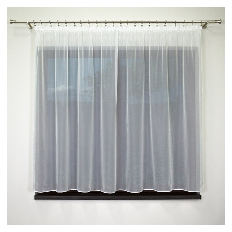 Dzięki swoim wymiarom 250 x 140 cm, firanka z białego woalu doskonale sprawdzi się jako elegancka ozdoba większości standardowych okien.