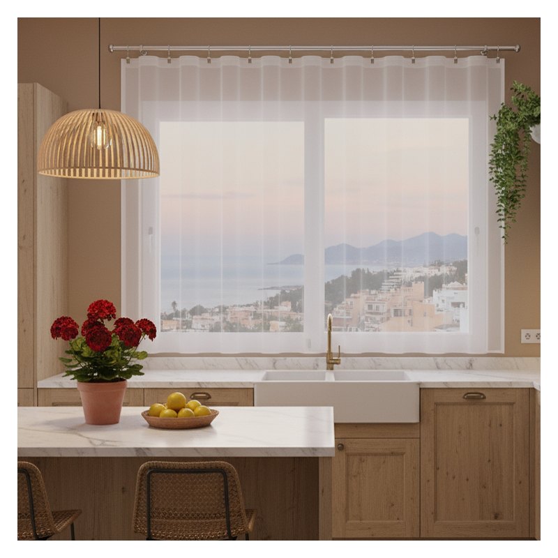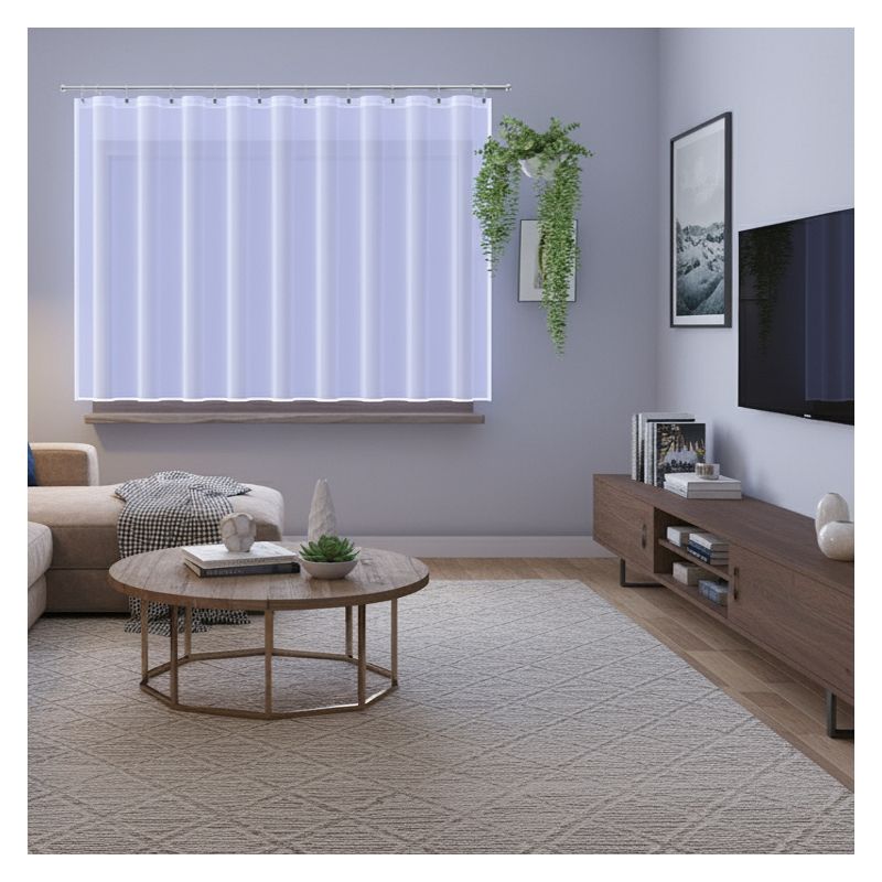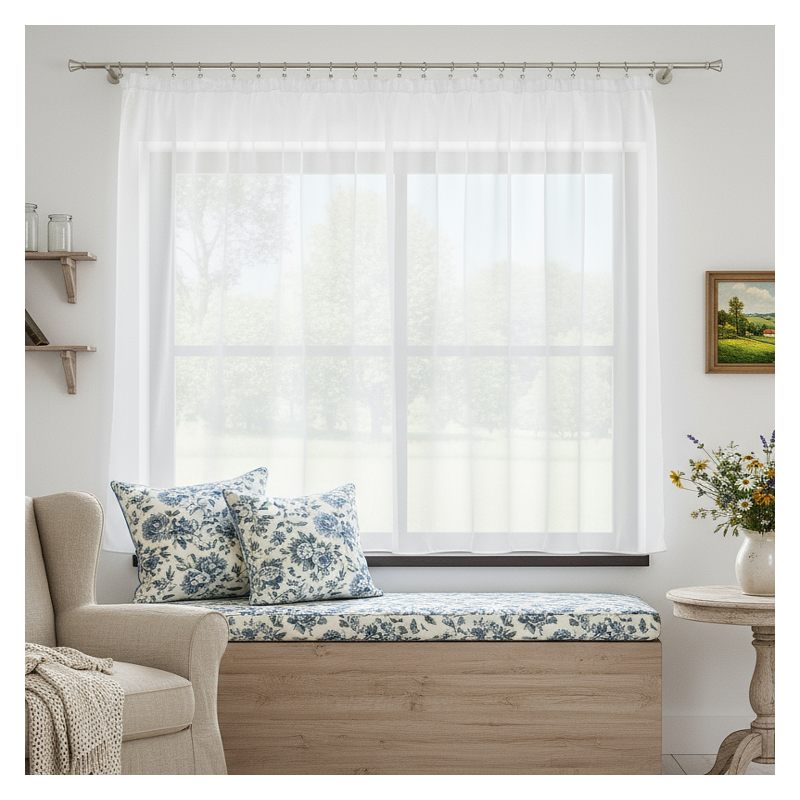 Woalowa firanka Seferis w klasycznym kolorze białym bezproblemowo dopasuje się do różnorodnych aranżacji wykończenia wnętrz.