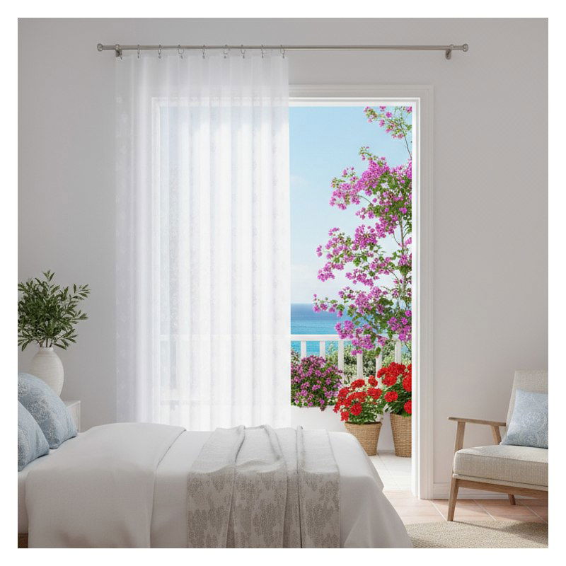 Klasyczna, biała kolorystyka firanki Suraba sprawia, że jest ona uniwersalną dekoracją i doskonale skomponuje się z różnorodnymi aranżacjami wykończenia wnętrz.