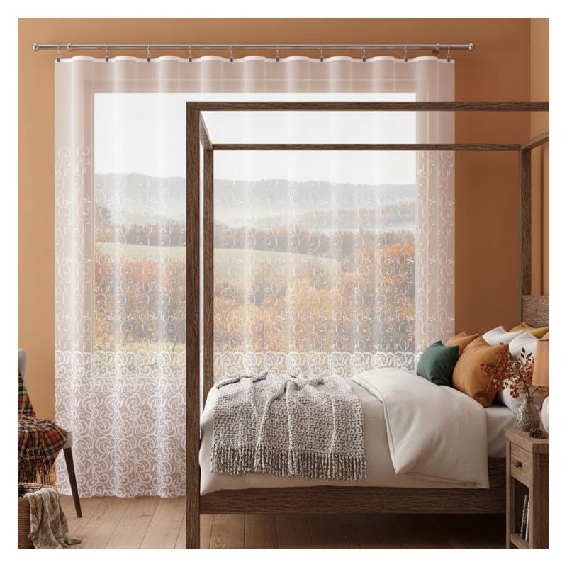 Uniwersalna biała kolorystyka firanki Terys sprawia, że doskonale komponuje się ona z każdą aranżacją wykończenia wnętrz.