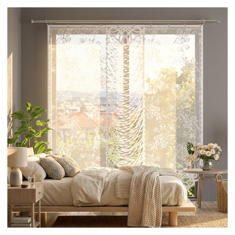 Biały kolor firanki Tina bezproblemowo pasuje do różnorodnych aranżacji wykończenia wnętrz - od minimalistycznych i nowoczesnych, aż po tradycyjnie urządzone.