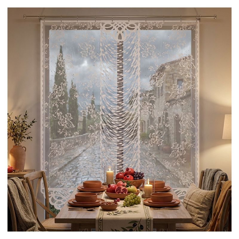 Dekoracja okienna dostępna jest w zawsze modnym białym kolorze. Klasyczna i uniwersalna biała kolorystyka dekoracji rozjaśni i estetycznie podkreśli wystrój każdego Twojego pomieszczenia.